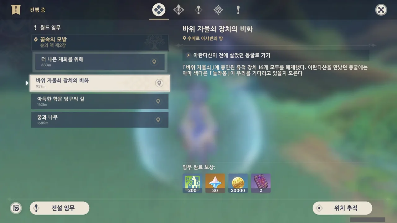 바위 자물쇠 임무를 할 때 누군가가 해준 조언에 따르면, 아란나라의 꿈속 수련을 모두 완료하면 보상을 준다고 한다.