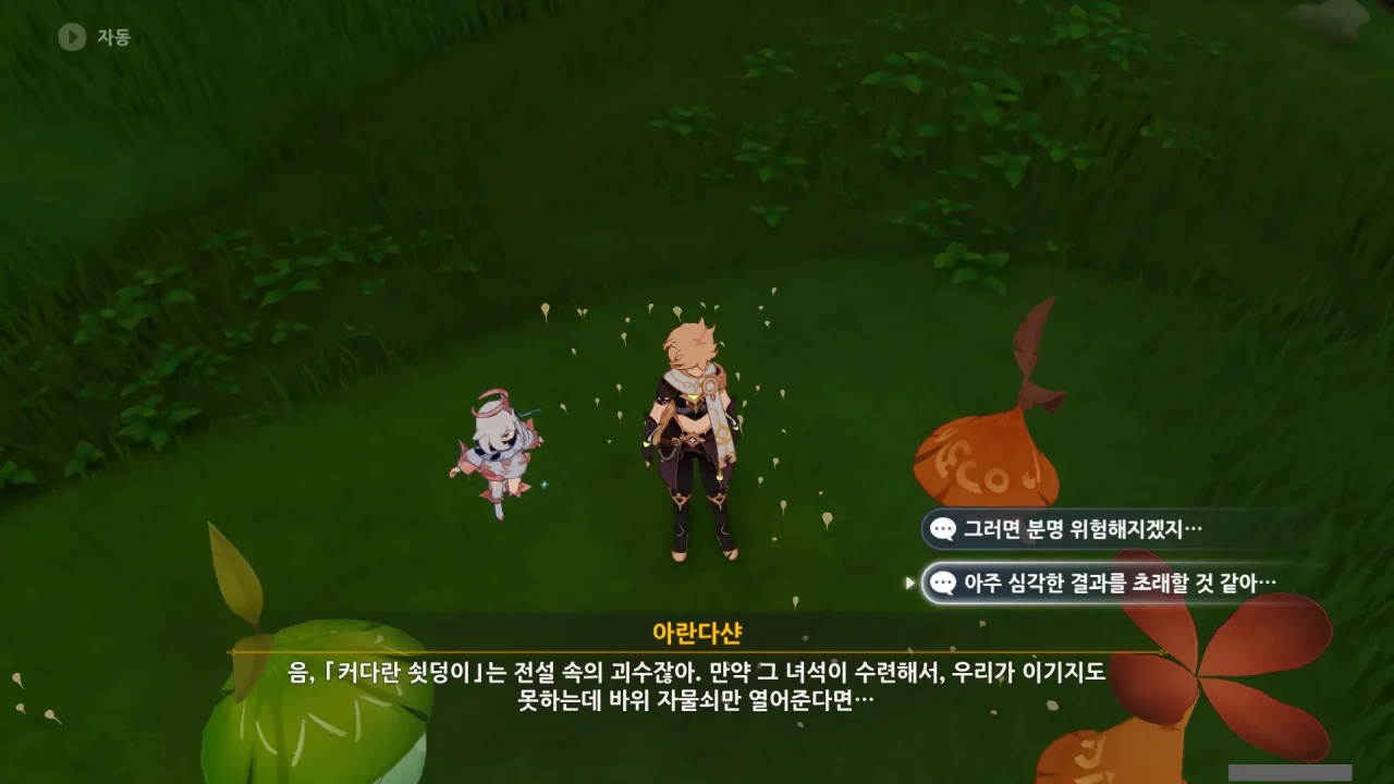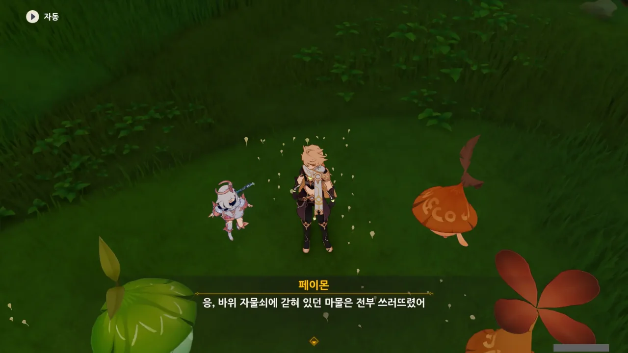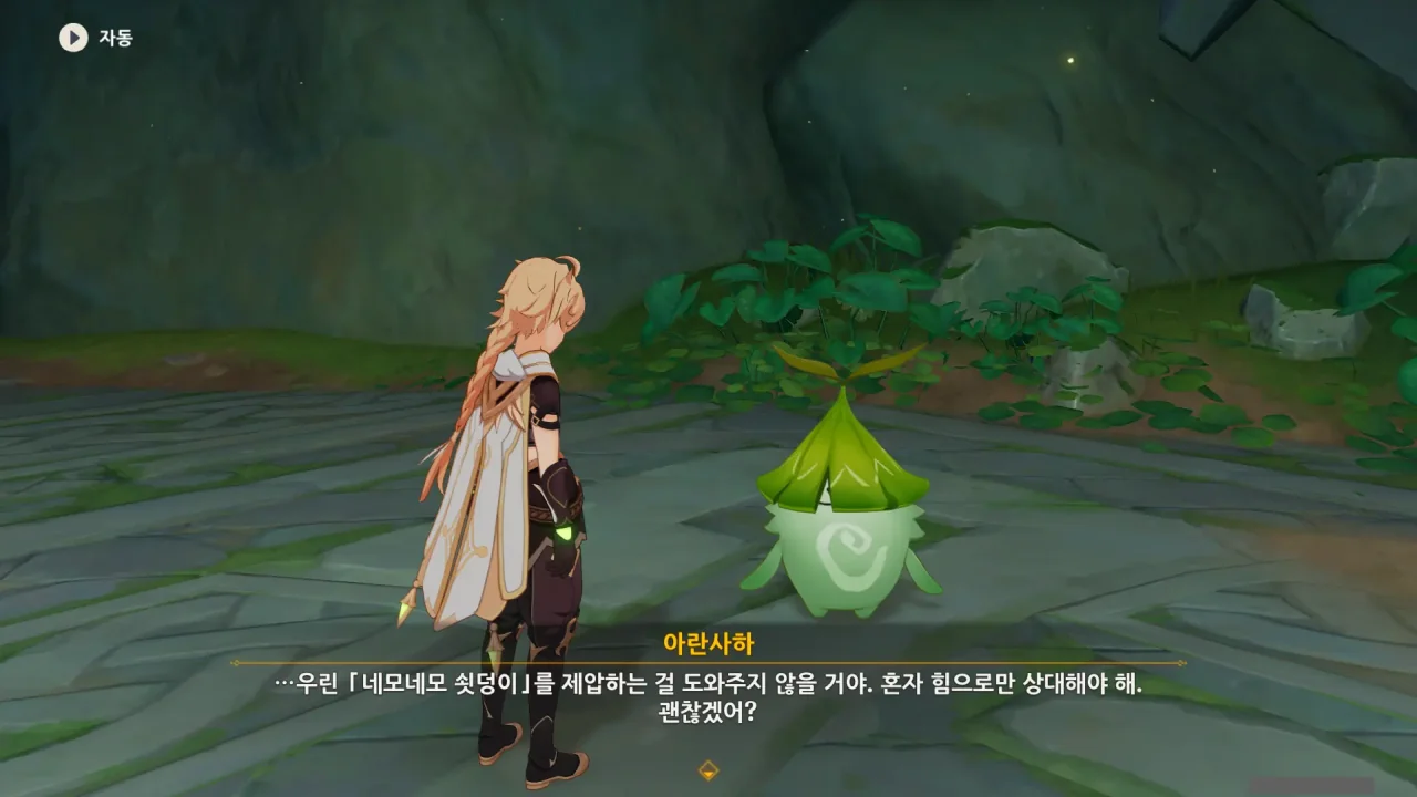 가야 할 곳이 물 밑에 있어, 또 풀 기둥을 쏴 물을 내려야 하나 싶었는데, 친절하게도 아란나라가 물을 내려주더라.