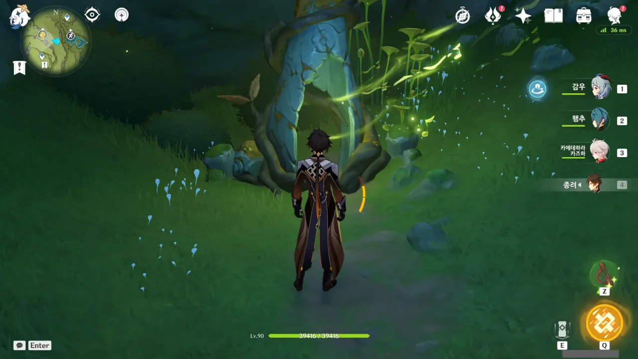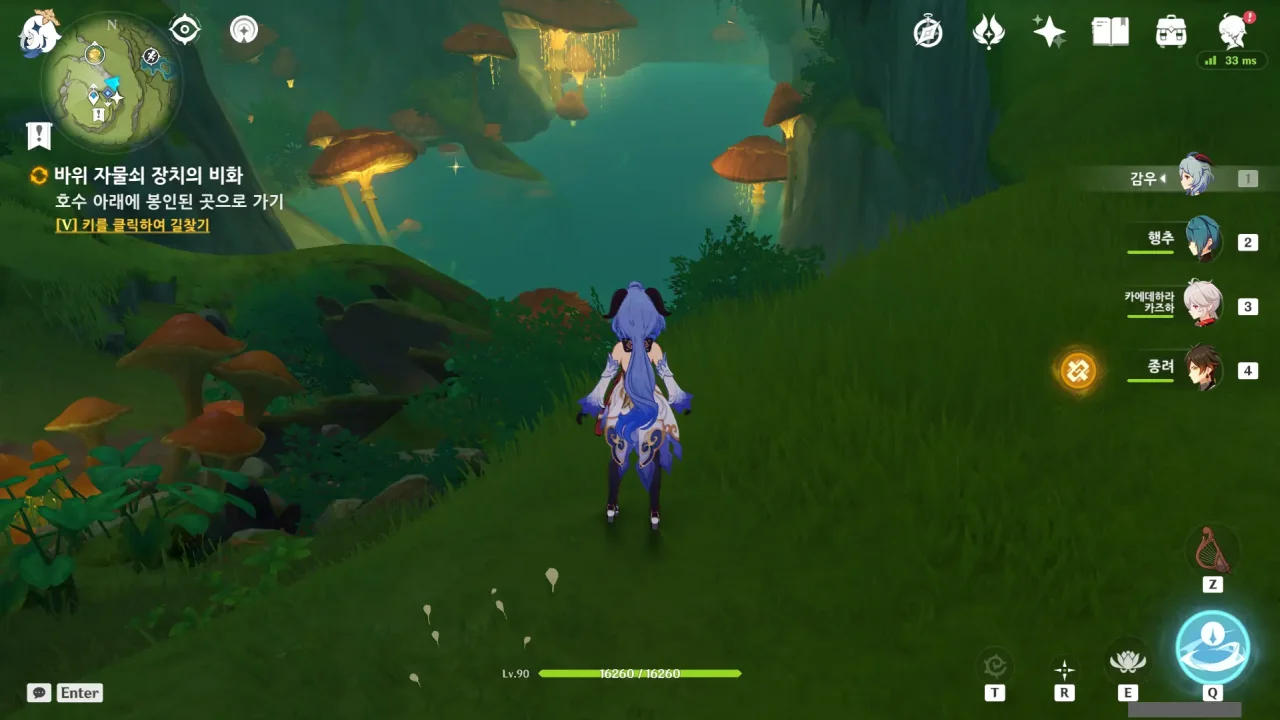 저 바위 자물쇠 역시 내가 직접 손으로 풀어야 해서, 요이미야로 바위 자물쇠에 불을 붙인 다음, 바위 자물쇠가 불에 타는 동안 재빨리 파티 구성을 전투용으로 바꿨다.