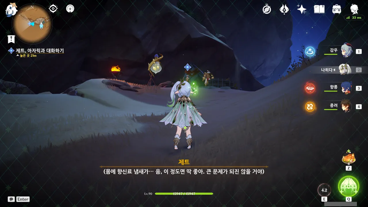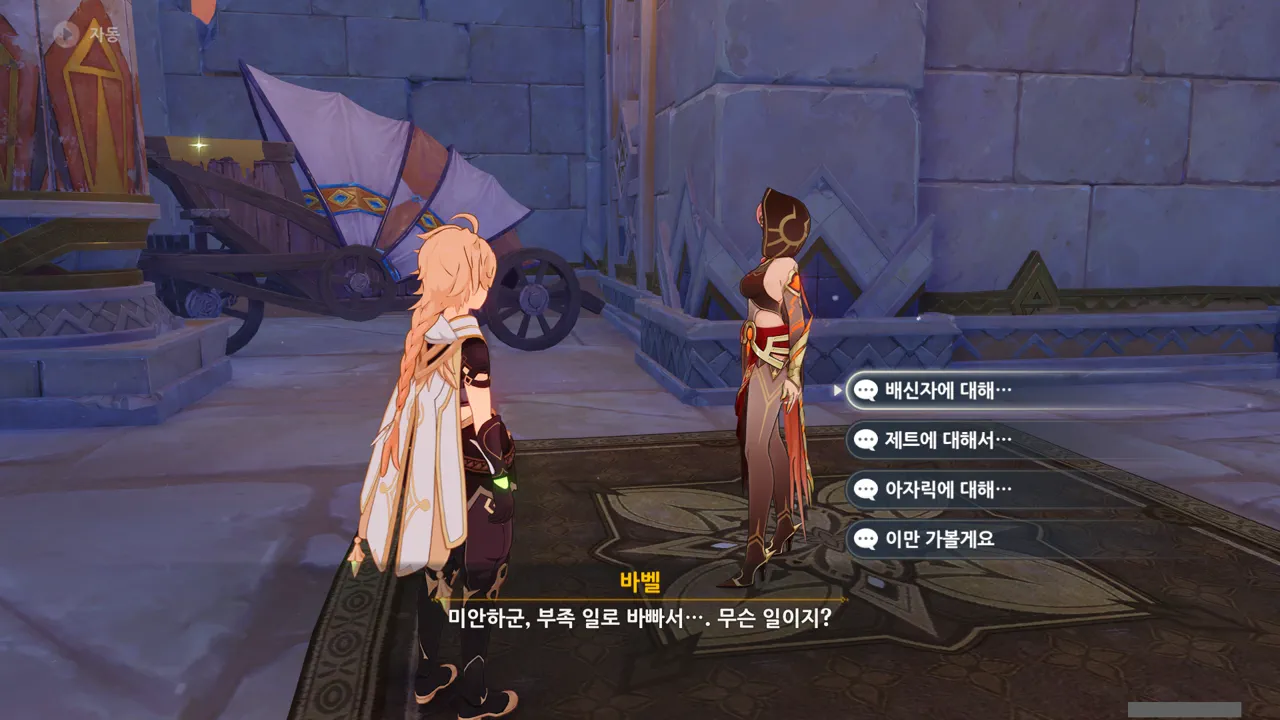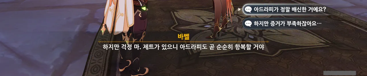 그런데 아까 '아자릭에 대해'라고 적힌 선택지 역시 물어볼 수 있을 줄 알았는데, 곧바로 다음 대화 지문으로 넘어가버리더라. 아자릭이 대체 어땠는데?!