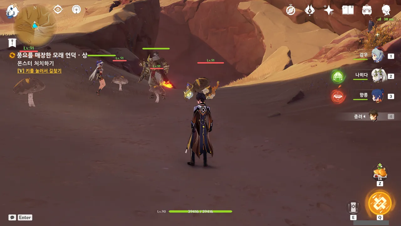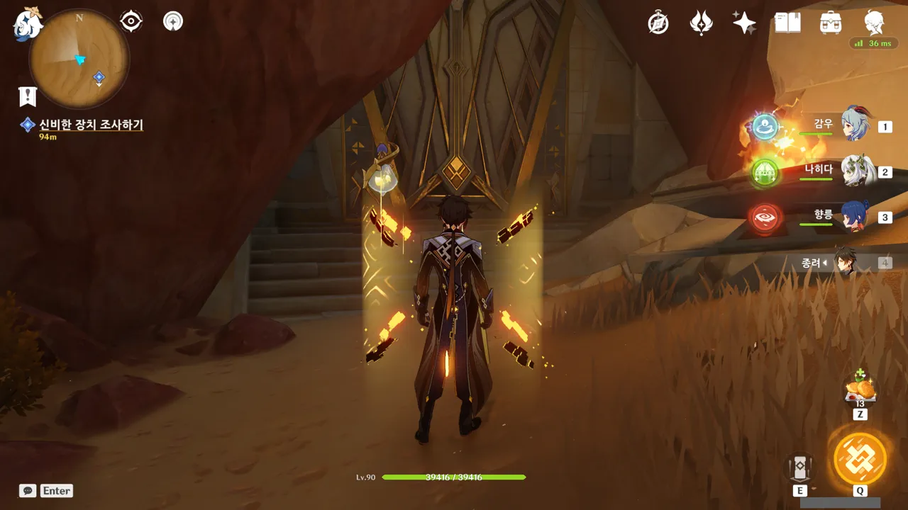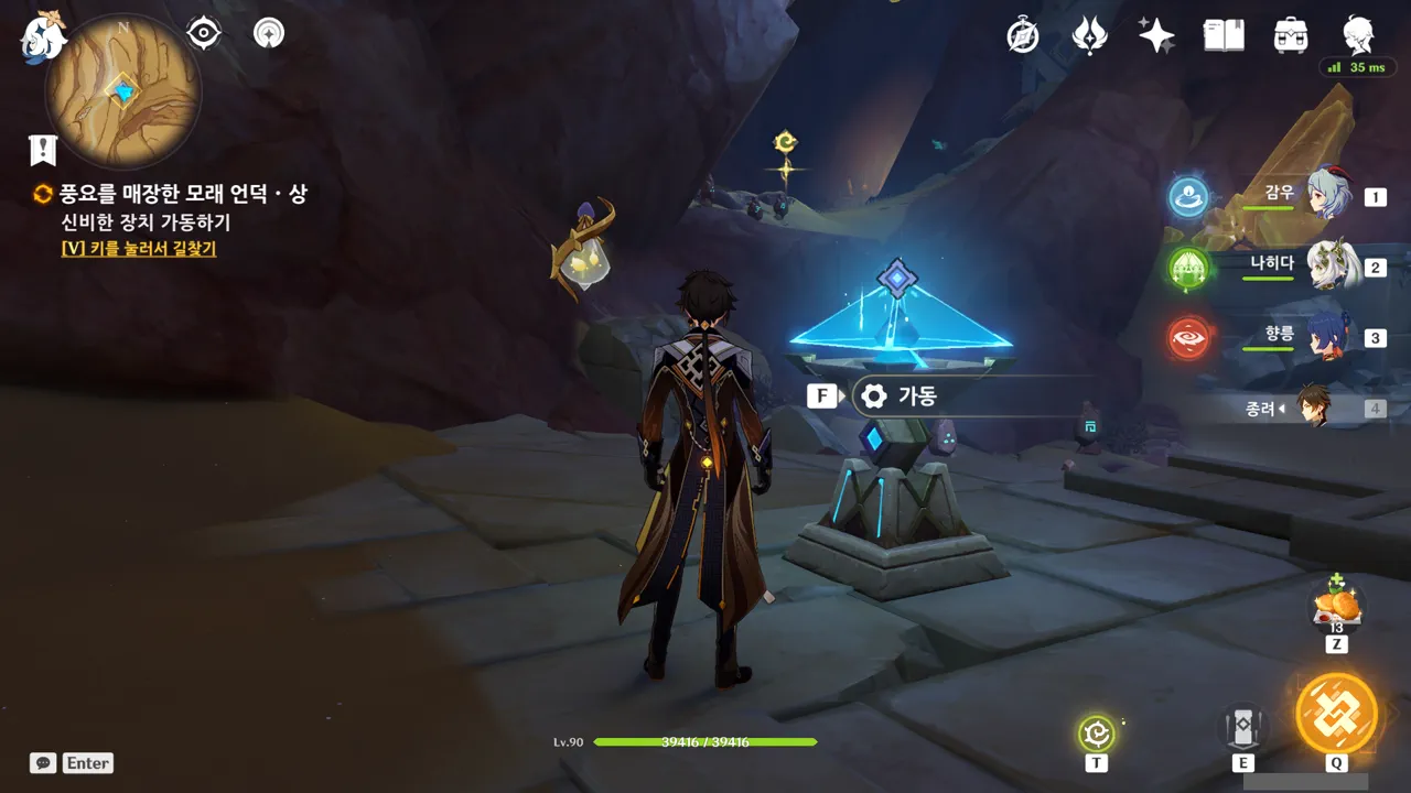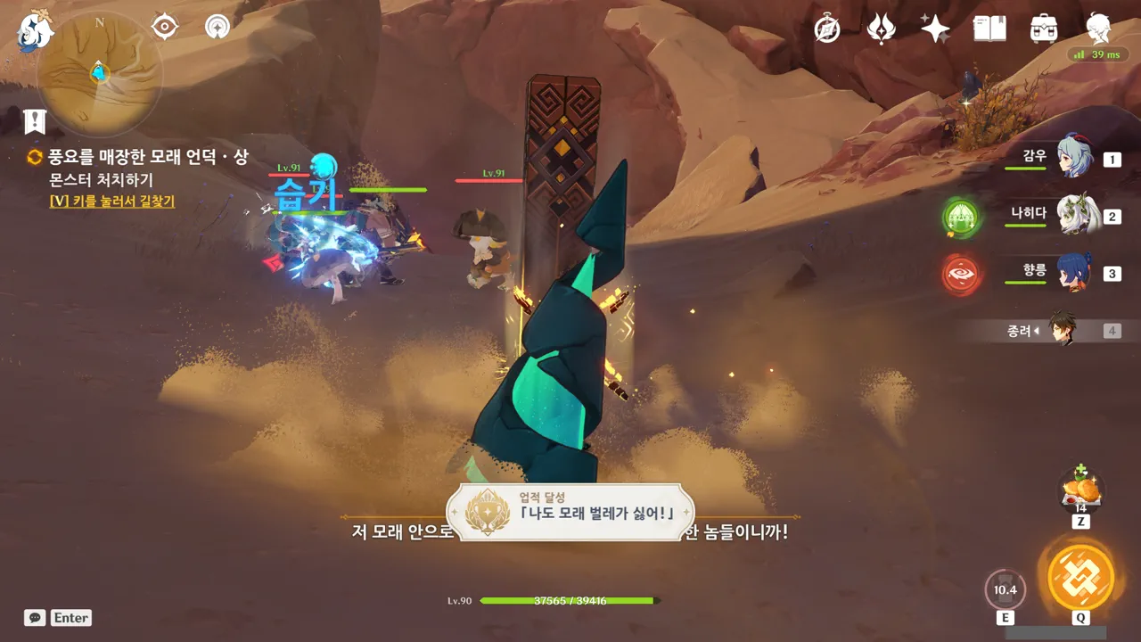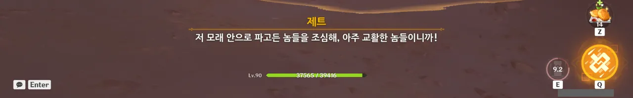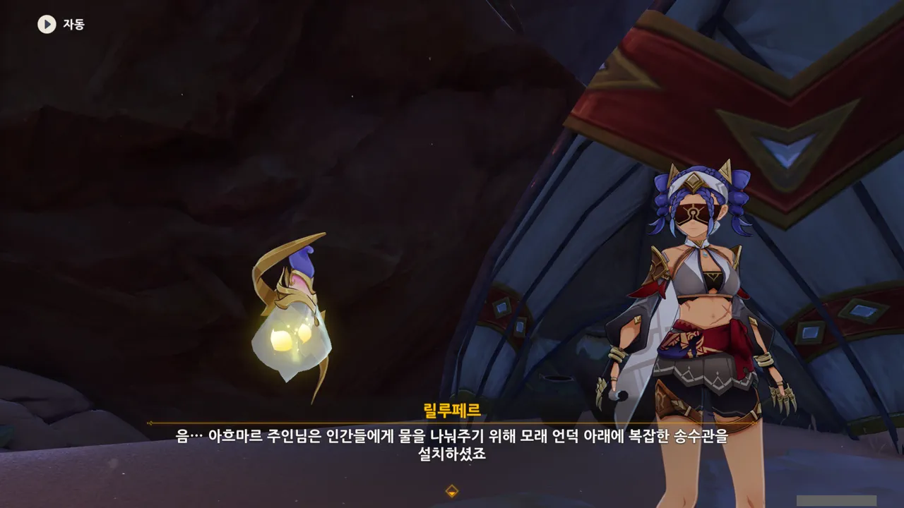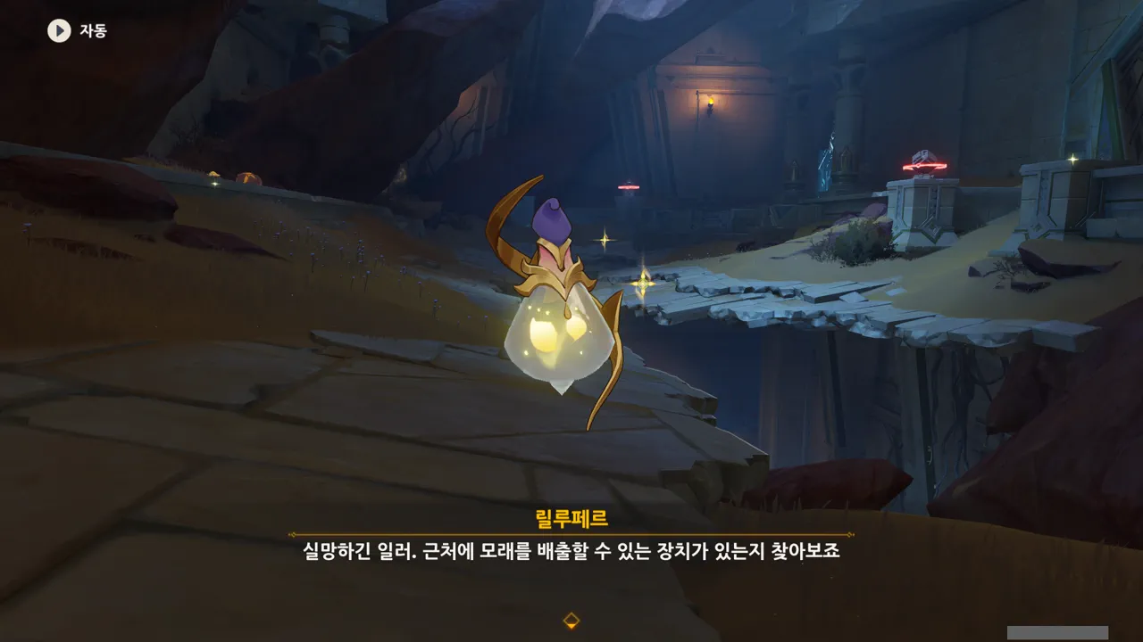 아란나라 이름이 다 거기서 거기라, 정확한 이름은 기억나지 않지만, 뭔가 촤라락 하니까 모래가 쏴아아 하며 싹 빠지던데.