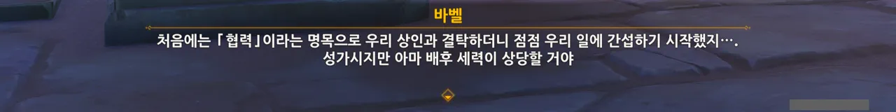 '외부인"? 바벨과 아자릭 둘 다 할 말을 잃은 걸 보아하니, 그 외부인에 대한 것 역시 어젯밤의 만남에서 알려준 듯하다.