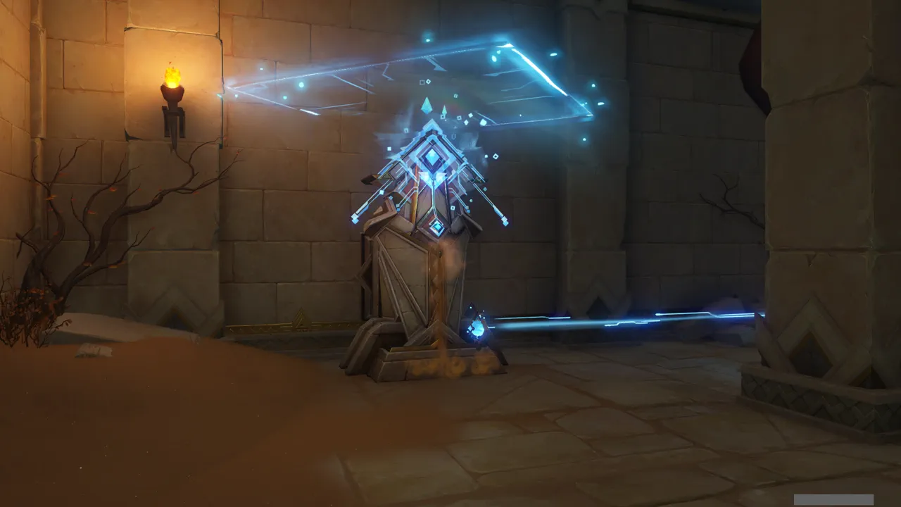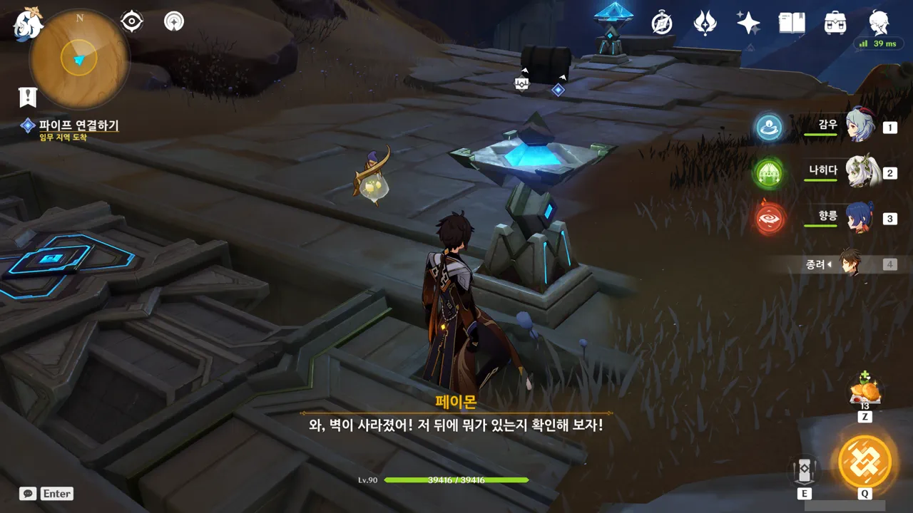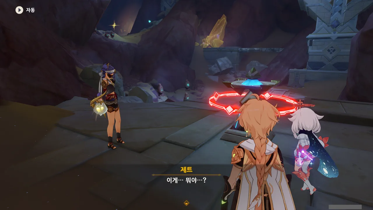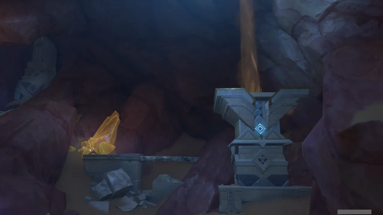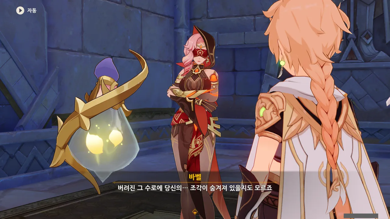 페이몬이 벽 뒤에 뭐가 있는지 살펴보자고 했는데, 저 스위치를 작동시키기 전에 먼저 이 방으로 들어와 퍼즐을 적당히 맞춰두었기 때문에, 페이몬이 뭐라 말할 새도 없이 퍼즐 보상이 나와버렸다.