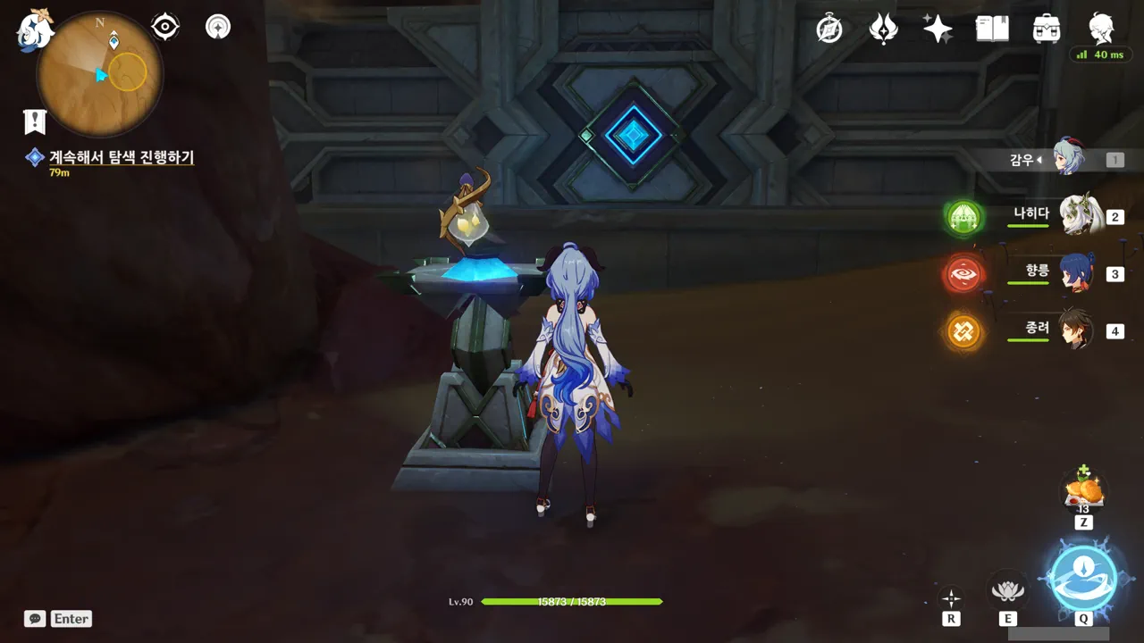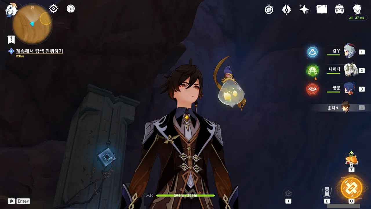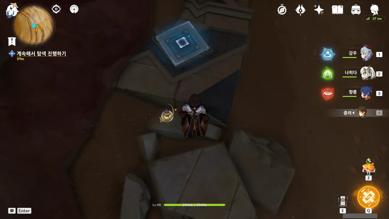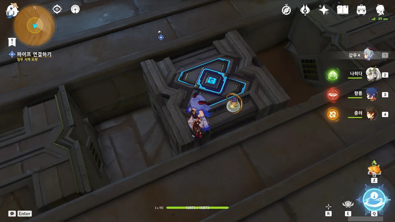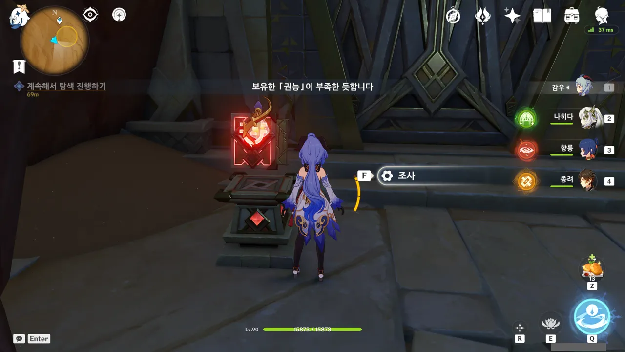 페이몬이 벽 뒤에 뭐가 있는지 살펴보자고 했는데, 저 스위치를 작동시키기 전에 먼저 이 방으로 들어와 퍼즐을 적당히 맞춰두었기 때문에, 페이몬이 뭐라 말할 새도 없이 퍼즐 보상이 나와버렸다.