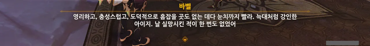 바벨의 속마음. 역시 어젯밤 바벨과 아자릭이 한판 한 모양이다.
