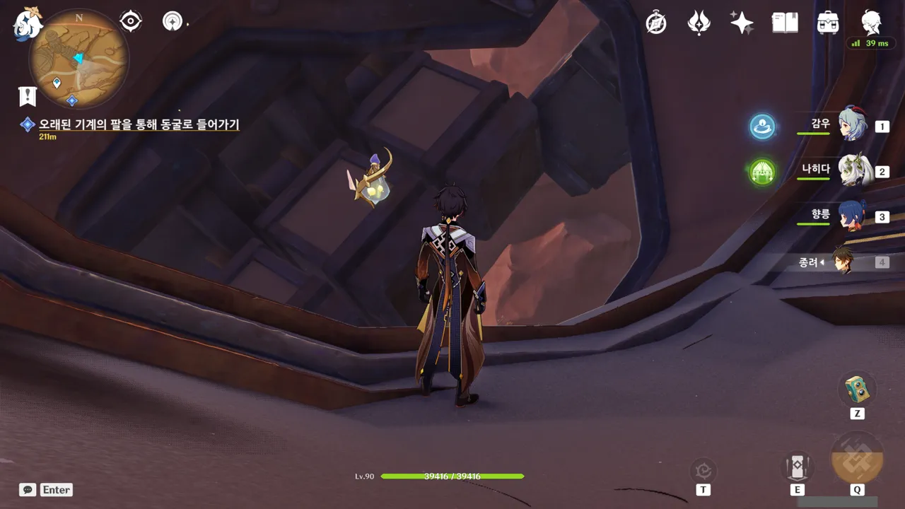 유적 거상의 팔을 통해 내려왔다. 그런데 거상의 주먹이 벽 안에 있는 게 아니라, 벽 바깥에 있다.