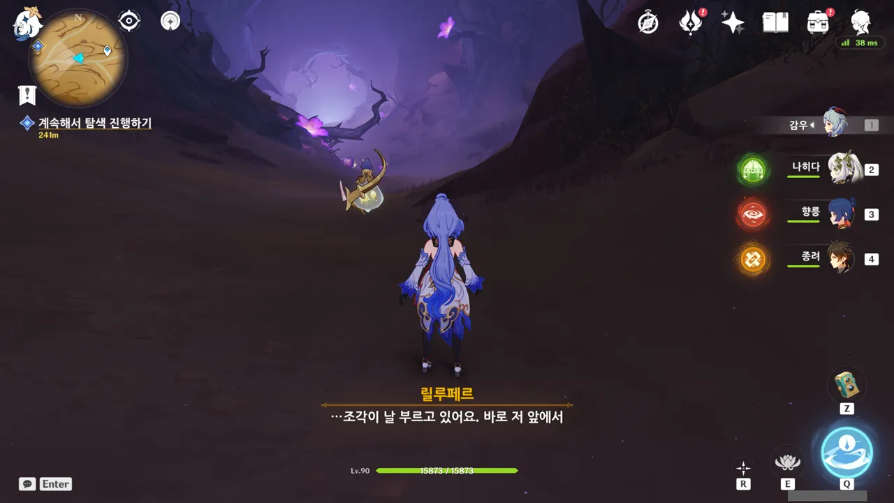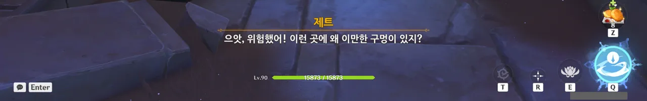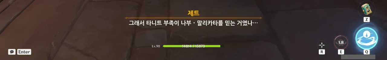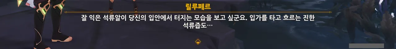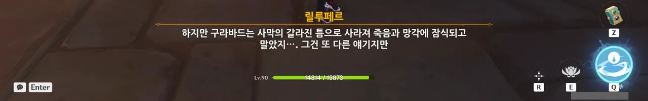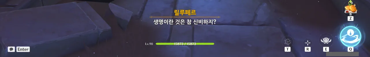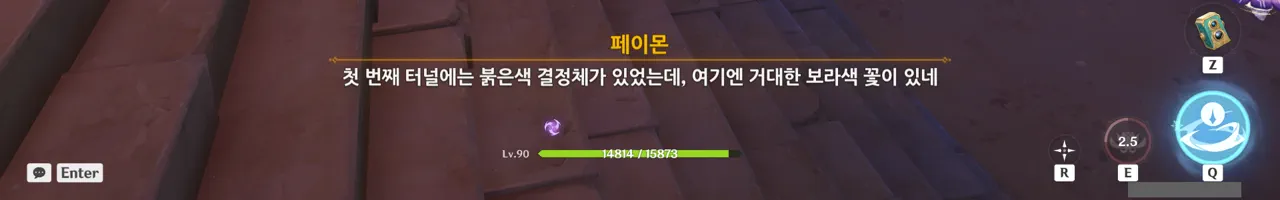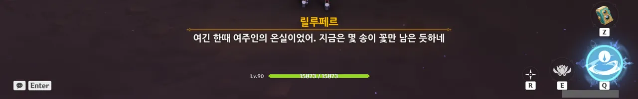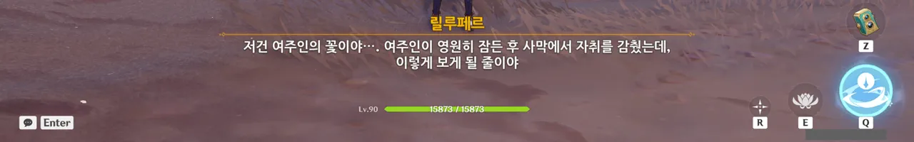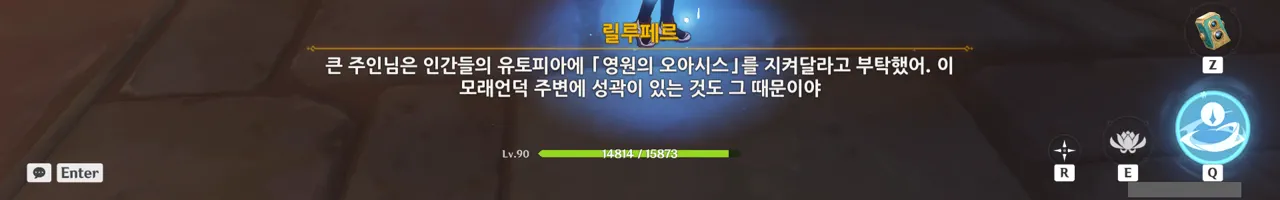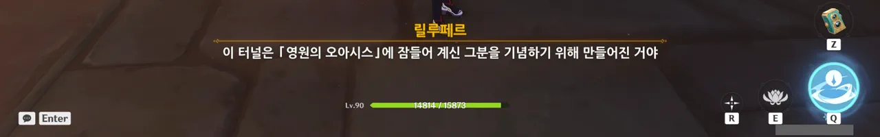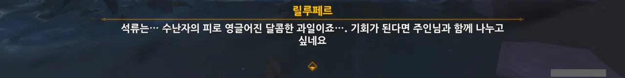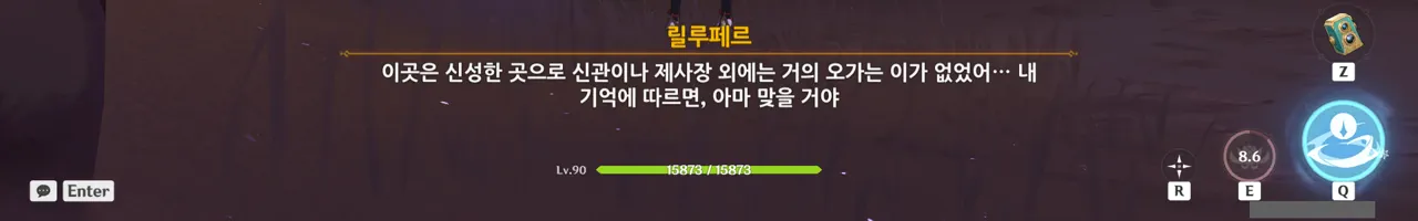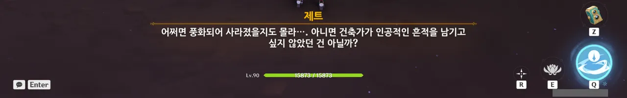 그냥 텍스트로 때워버리니, 여행자가 저걸 찰나에 모두 느낀 건지, 아니면 멍하니 서있으며 1배속으로 본 건지, 다른 NPC가 말해주지 않으면 알 수 없다.
