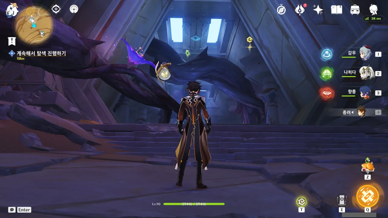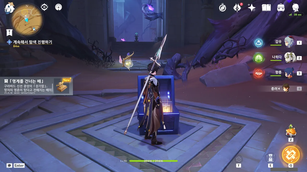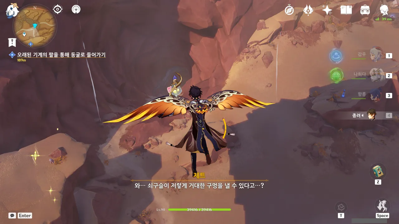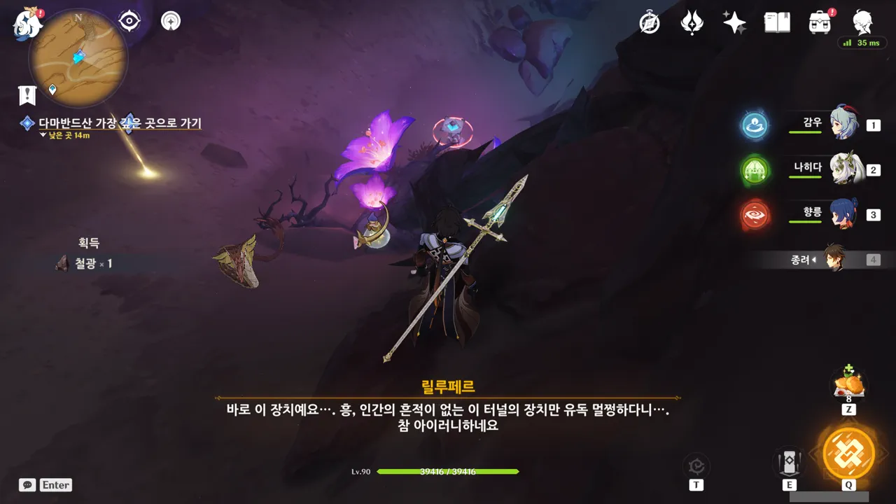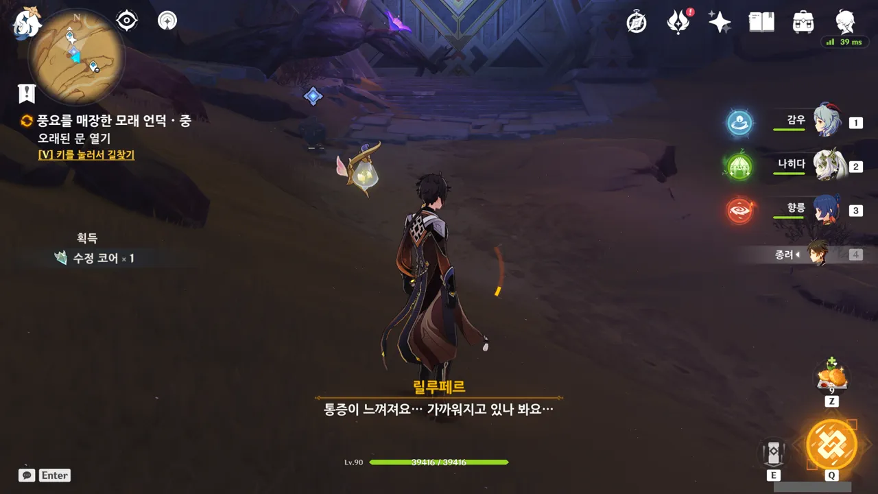 그냥 텍스트로 때워버리니, 여행자가 저걸 찰나에 모두 느낀 건지, 아니면 멍하니 서있으며 1배속으로 본 건지, 다른 NPC가 말해주지 않으면 알 수 없다.