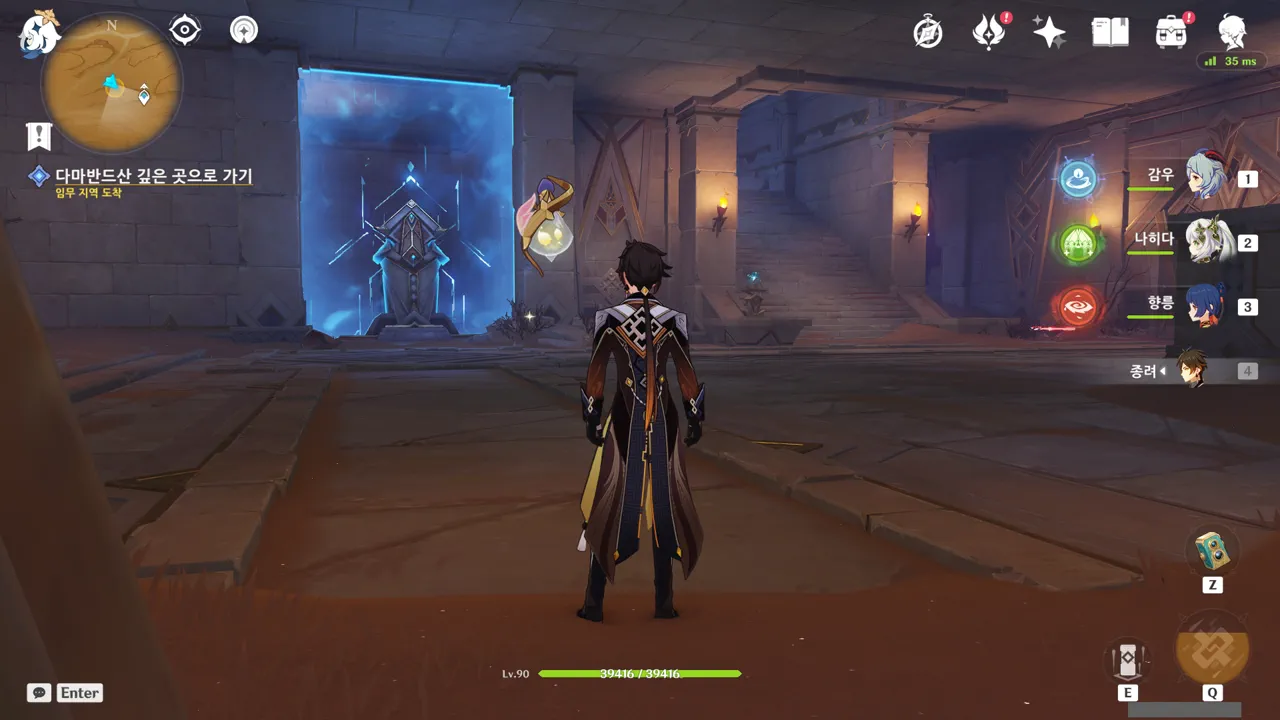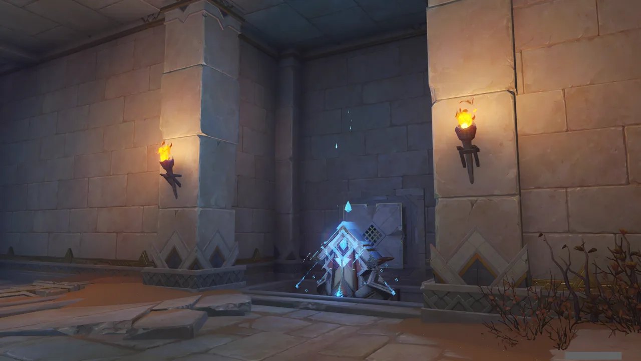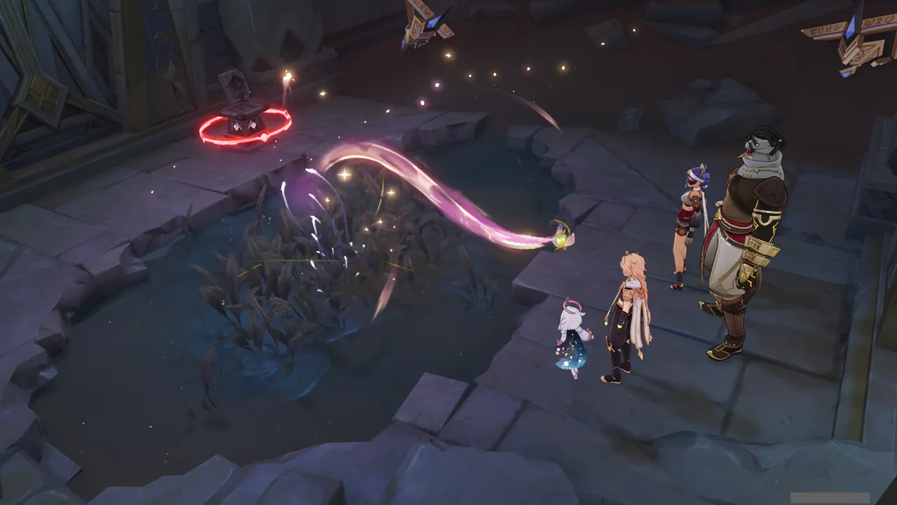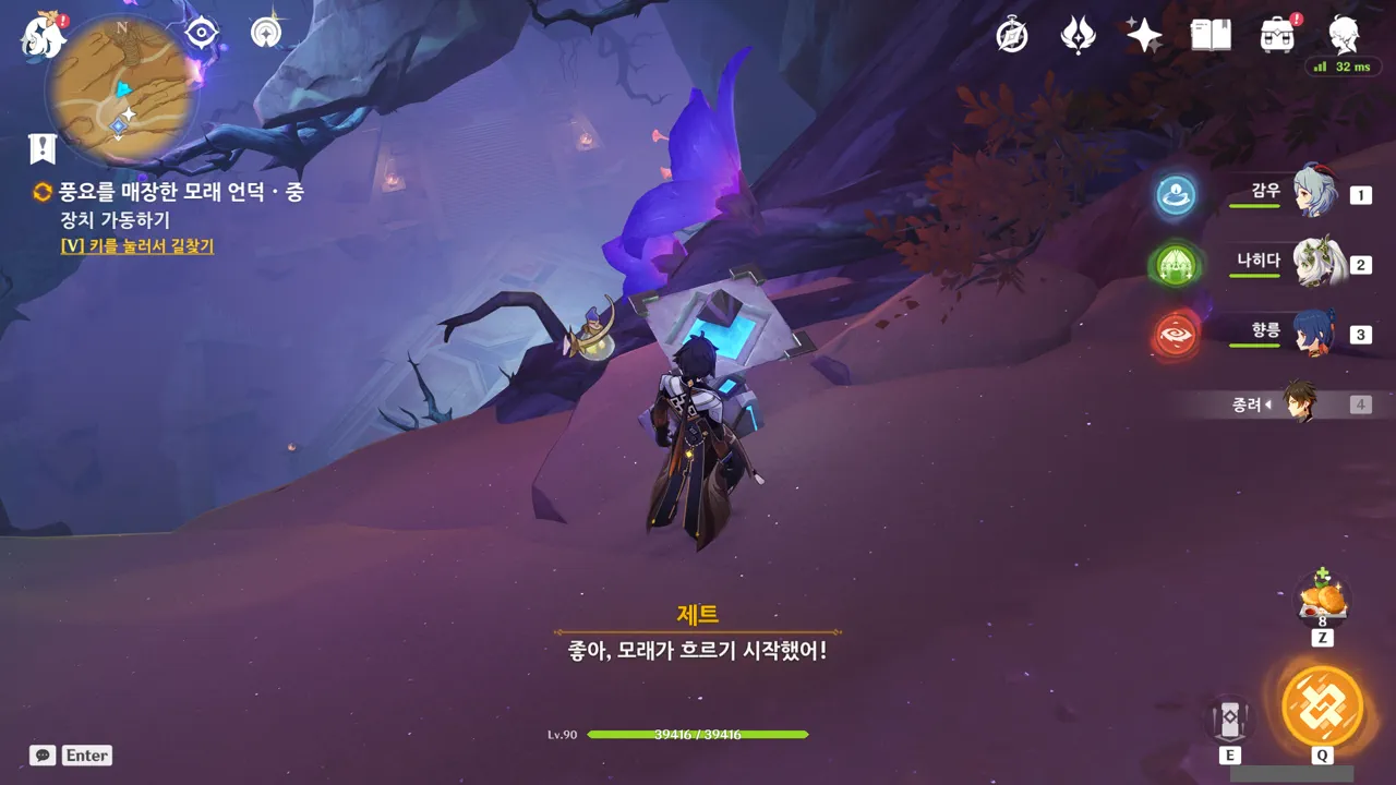 앞에는 '저수지'와 스위치가 하나 있었다. 릴루페르가 잠금을 해제해 준 스위치를 누르자, 저수지에 모래가 가득 차며 길이 열린다.