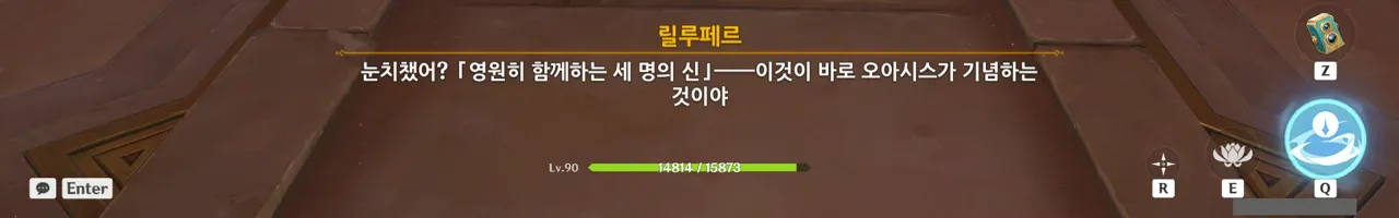 영원의 오아시스는 화신의 무덤이지만, 세 신이 함께했던 추억을 보존하는 공간이기도 한 모양이다.