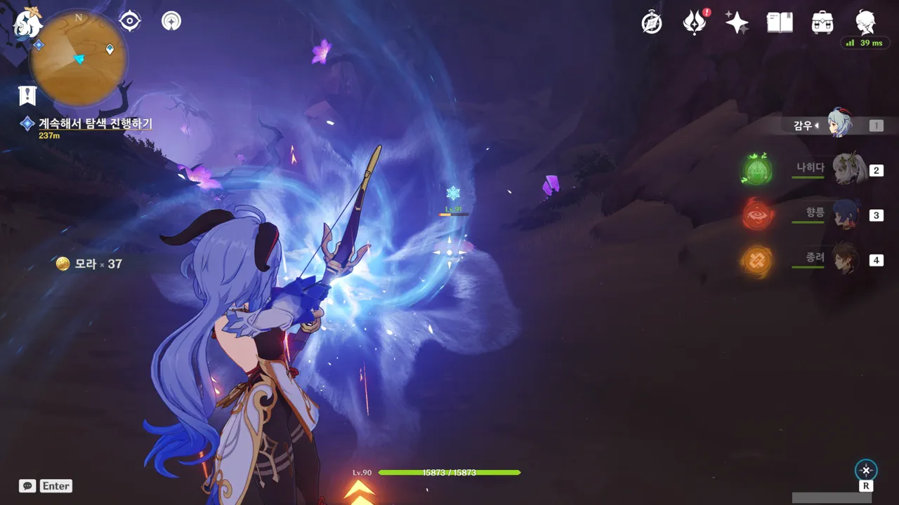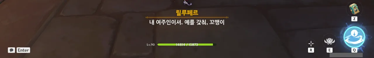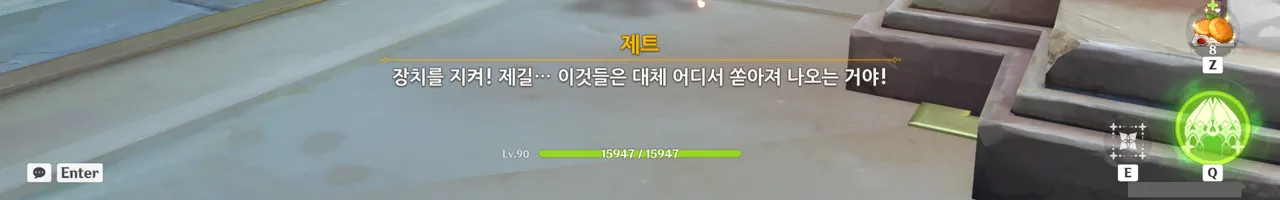 전투 도중 대사가 나오면 사진을 찍기 힘들어서 계속 뒤로 도망치고 있었거든…