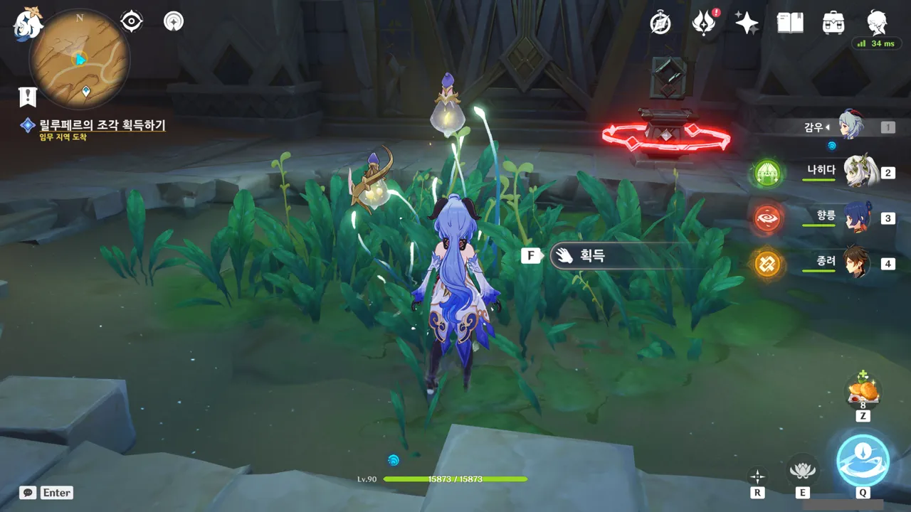 저번 온실과 똑같은 구조의 방이다. 내려가는 계단 밑에 작은 오아시스 하나, 그 위에 릴루페르의 조각 하나.