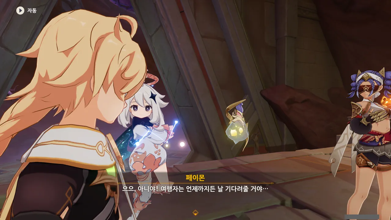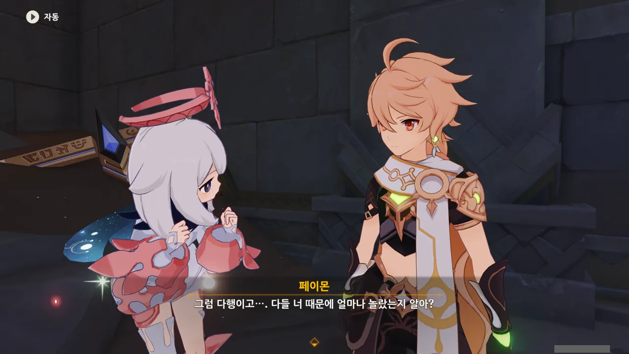 페이몬이 옛날에 날아다니는 것처럼 보이지만, 보이지 않는 곳에서 열심히 뛰어다니고 있다고 말한 것 같은데, 평소 하는 걸 보면 전혀 그렇게 안 보이거든.