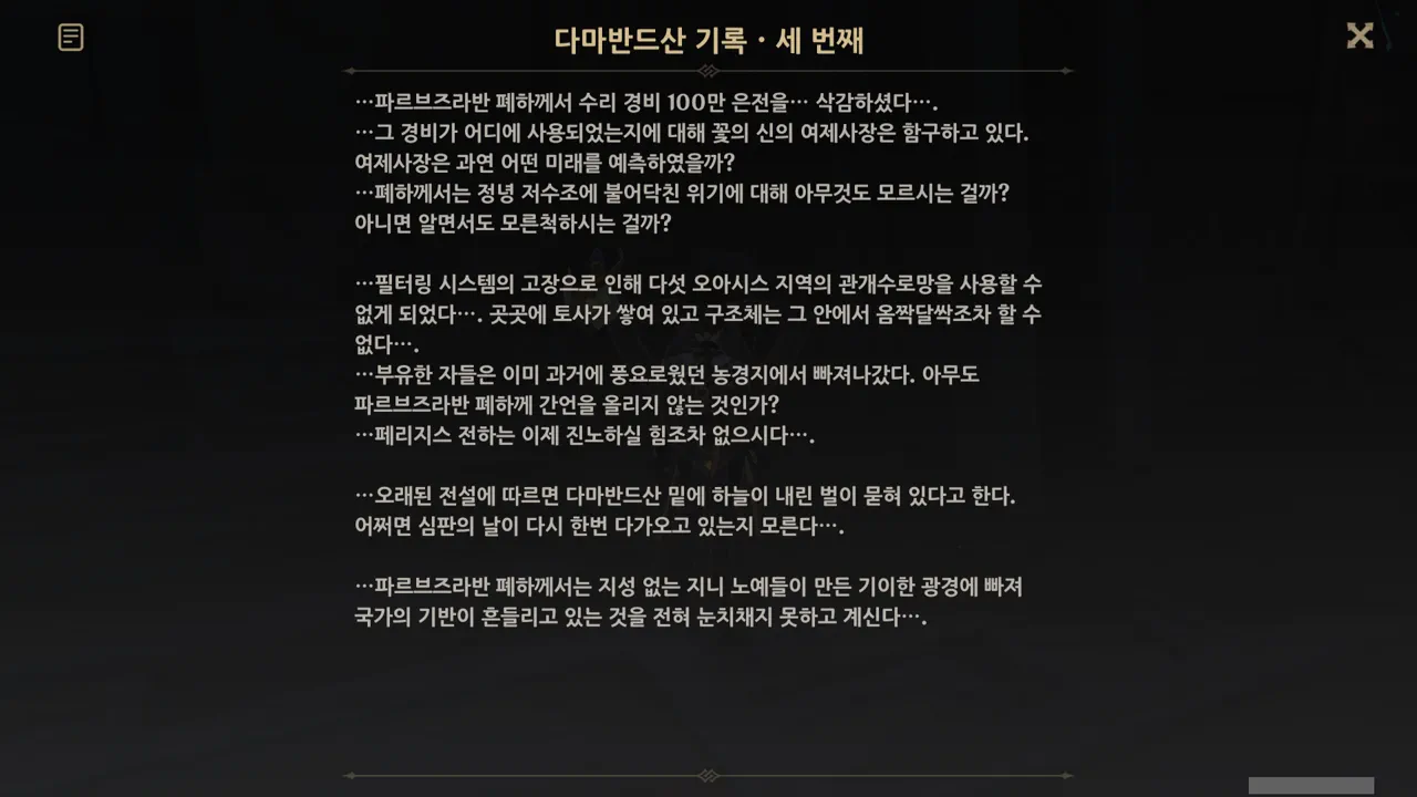 세 번째 다마반드산 기록. 여기도 구라바드에서 본 것처럼, 나라가 망해가는 징조가 보인다.