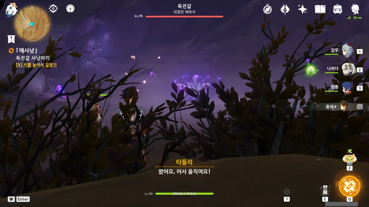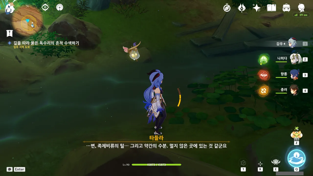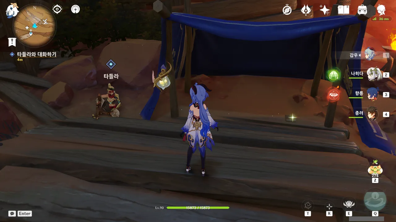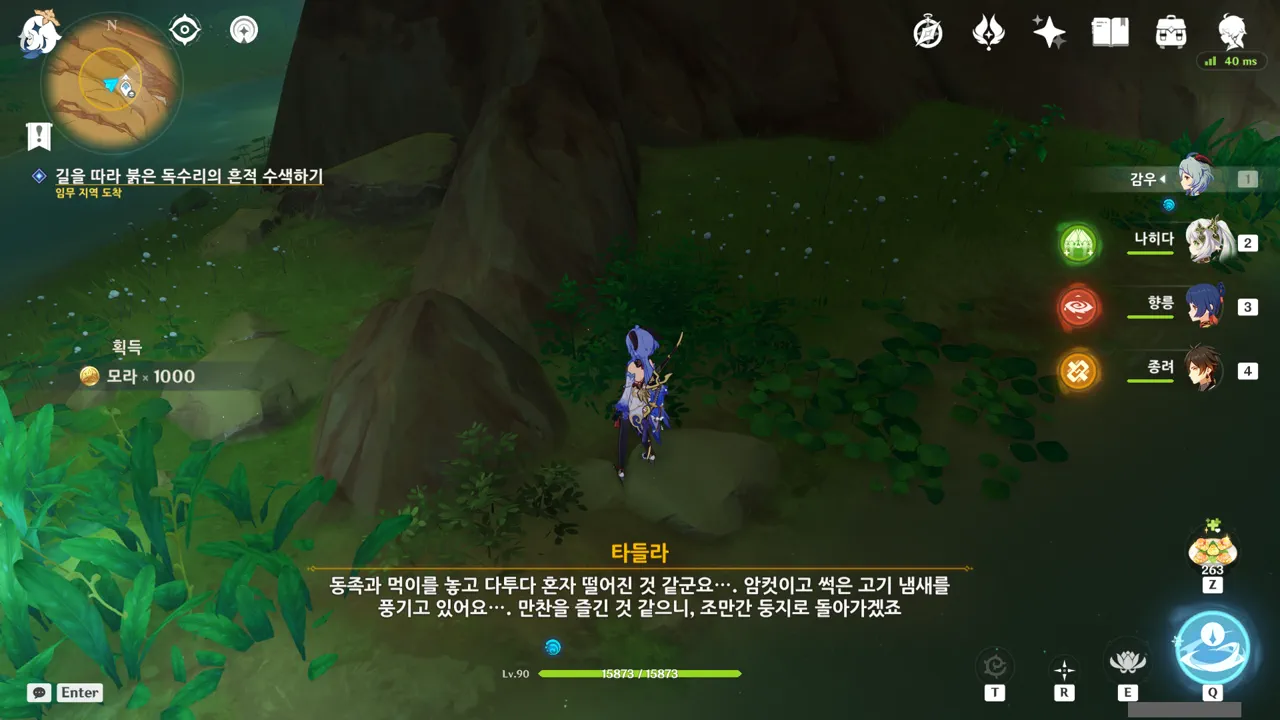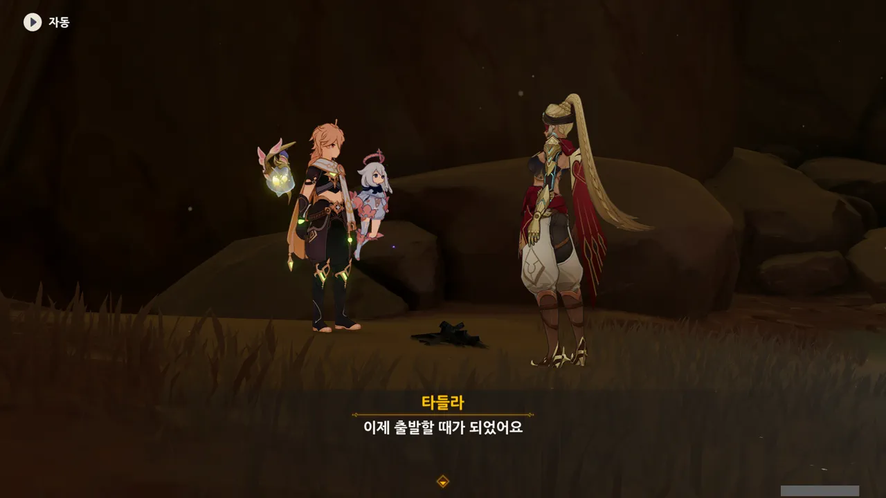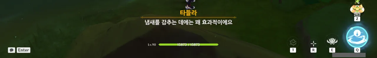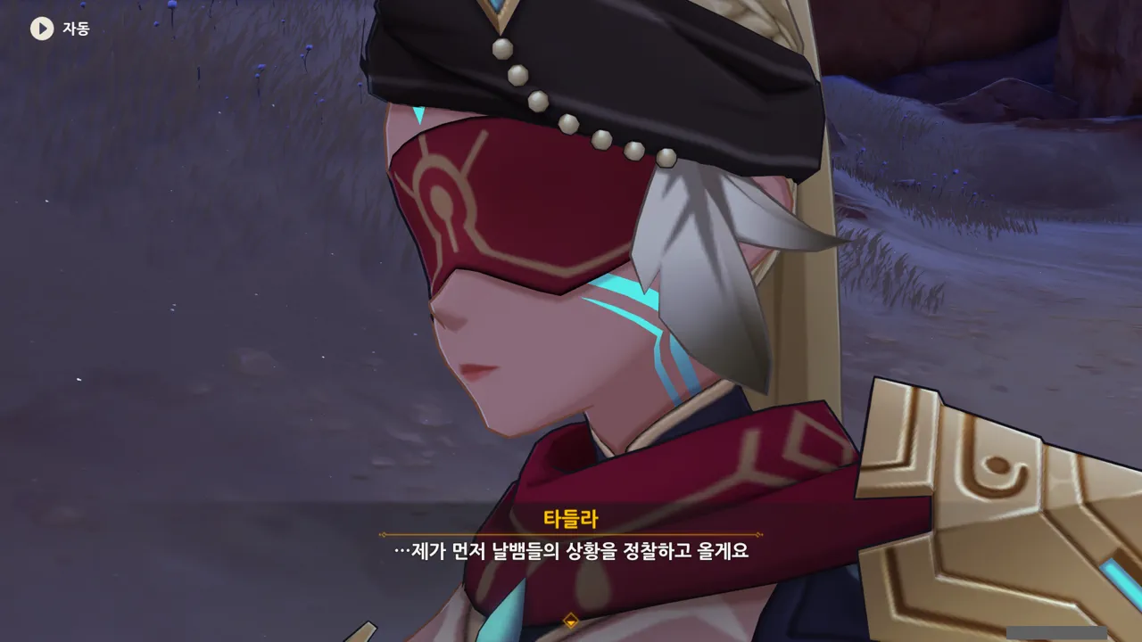 흠… 아까 우인단과 전투할 때, 우연히 타들라가 나히다의 E 스킬 범위 안에 들어가, 타들라의 속마음을 볼 수 있었다.