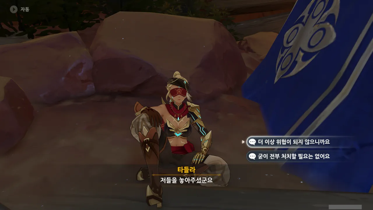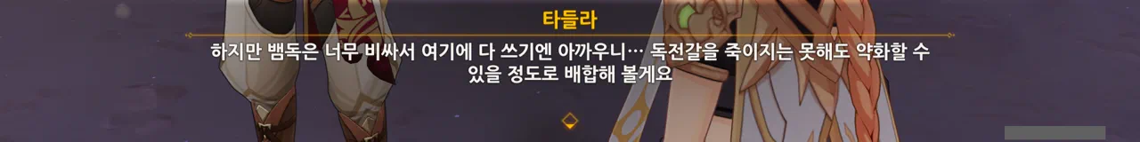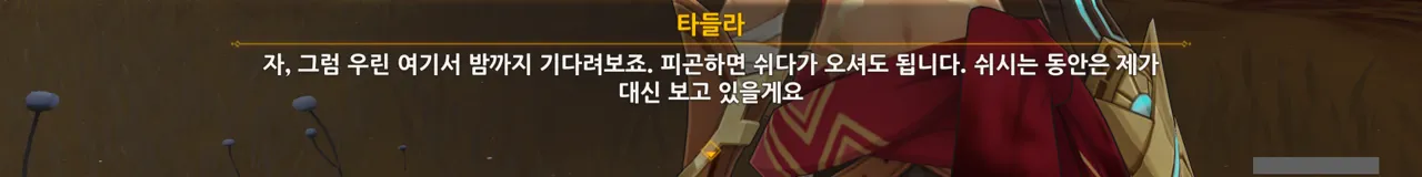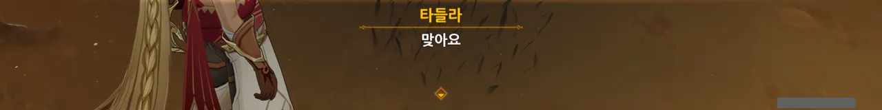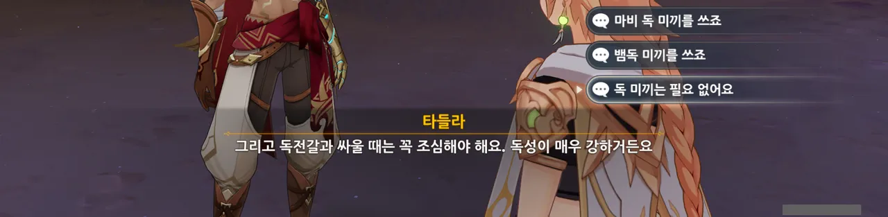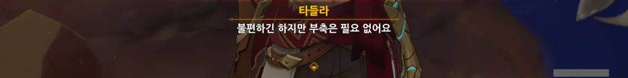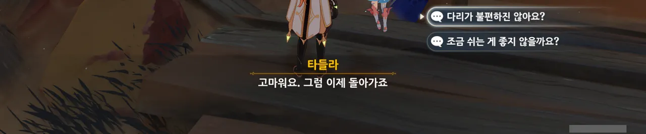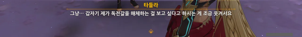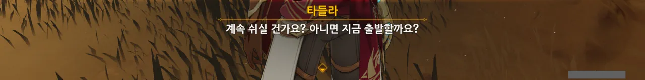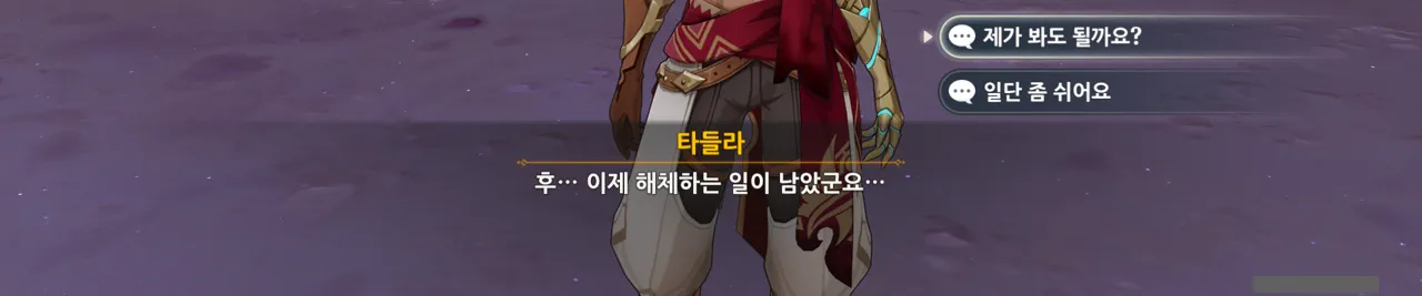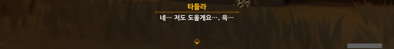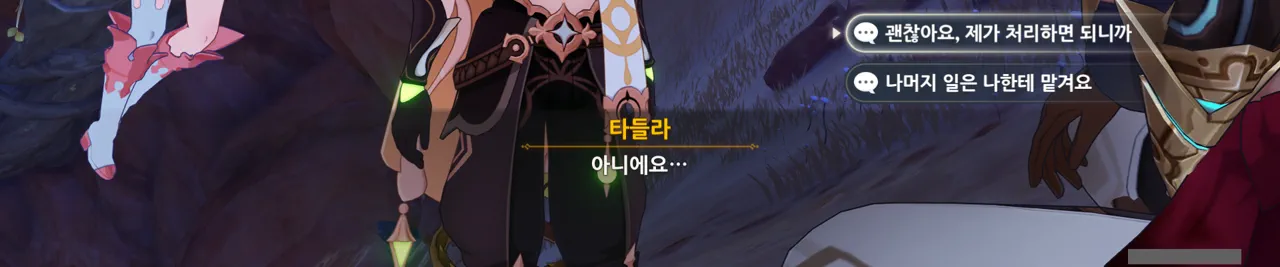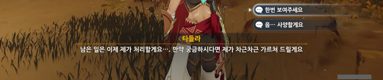 그냥 "음… 사양할게요"를 선택해도 되었지만, 타들라가 말한 남은 일이 무엇인지 궁금해 위쪽 선택지를 골랐다.