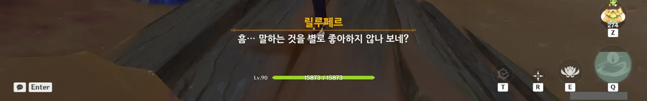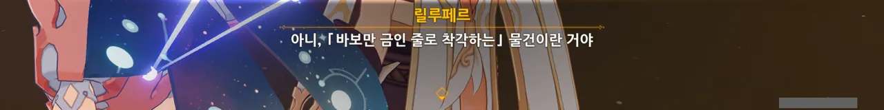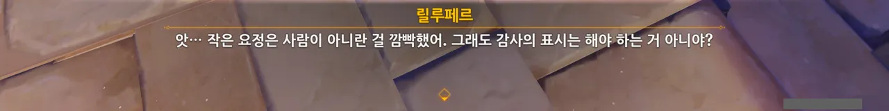 페이몬 헤헤, 릴루페르는 사람이 아니잖아? 릴루페르 아, 페이몬은 사람이 아니었지? 미안, 깜빡했어.