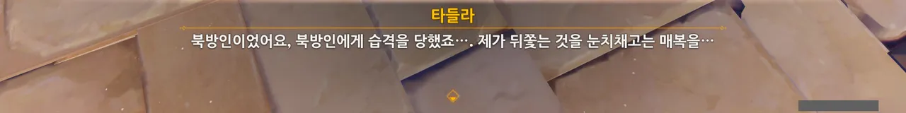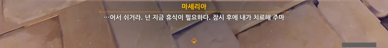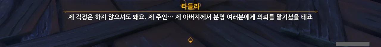 첫 만남에서도 그랬지만, 타들라는 큰 상처로 인한 고통도 별 것 아니라고 말하며 상처의 고통을 묵묵히 참는다. 아마 마세리아의 가스라이팅 때문이겠지.
