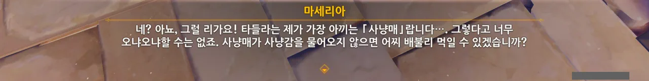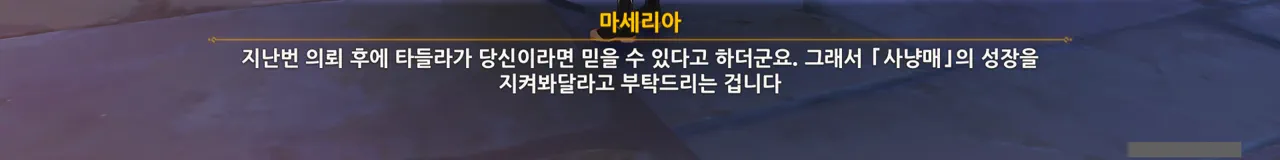 타들라를 사냥매라고 부르면 마세리아의 가스라이팅에 대해 동의하는 꼴이 되는 것 같아, 일부러 사냥매라고 부르지 않기로 결심했다.
