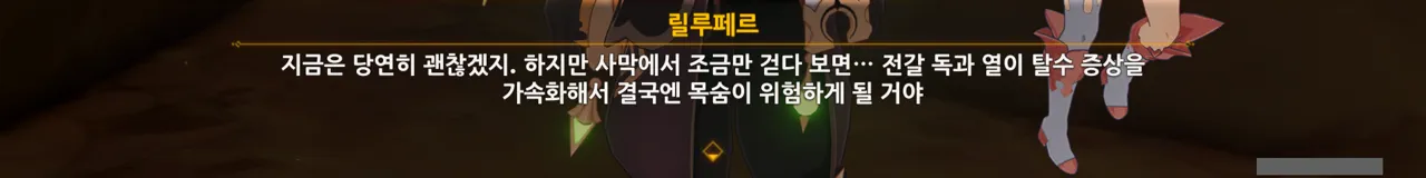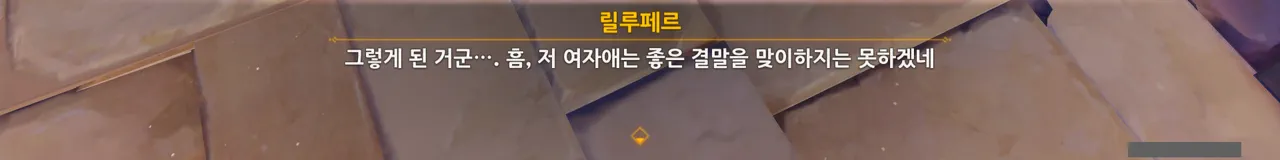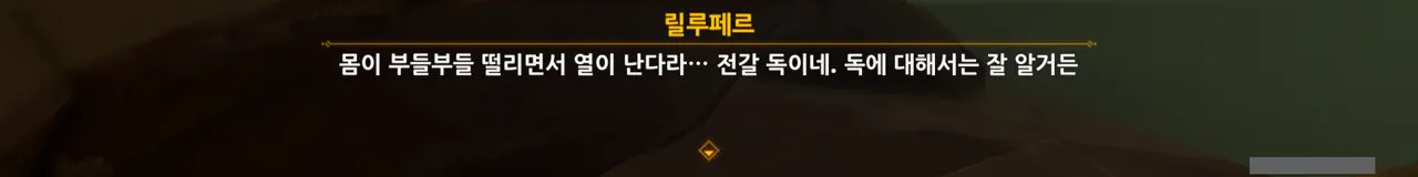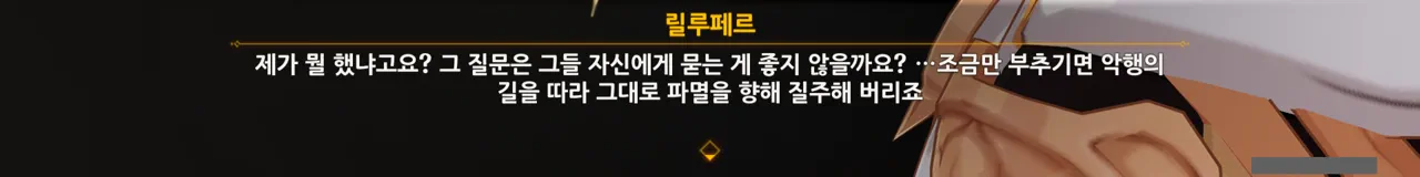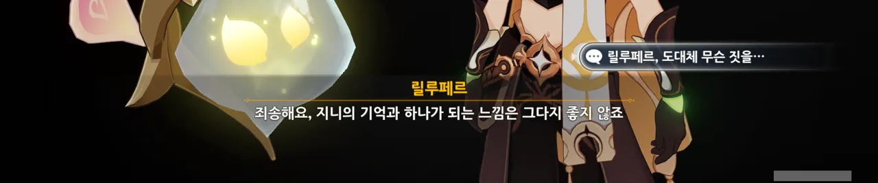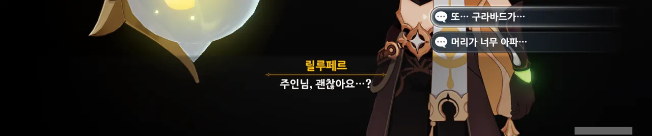 어째 배경이 온통 검은색이다 싶었는데, 여태껏 릴루페르와 심상 세계에서 대화를 한 것 같다.