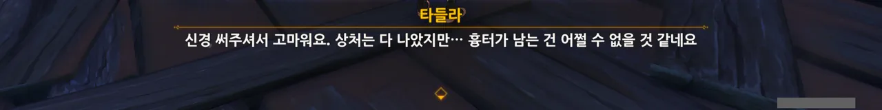 저번에 타들라가 입은 상처가 흉터가 질 정도로 심한 상처였나 보다.