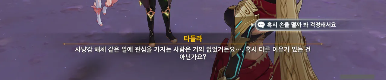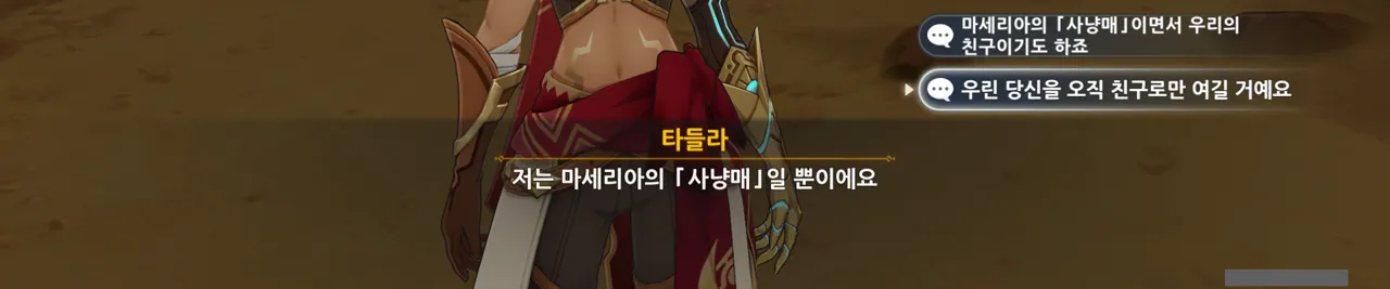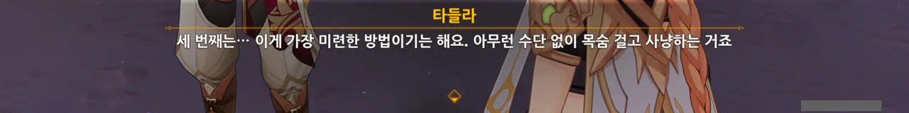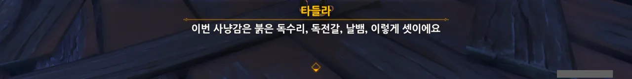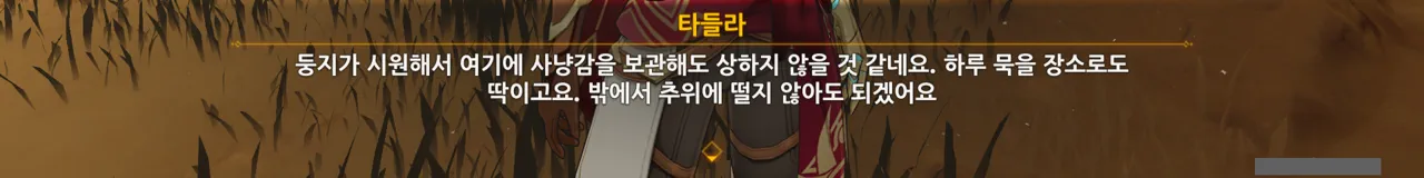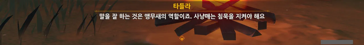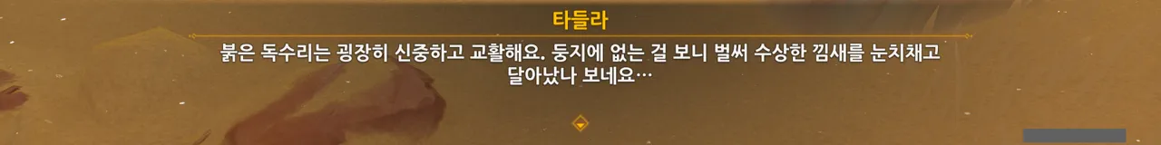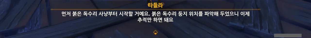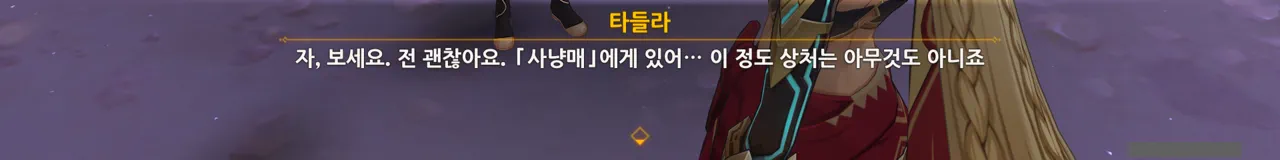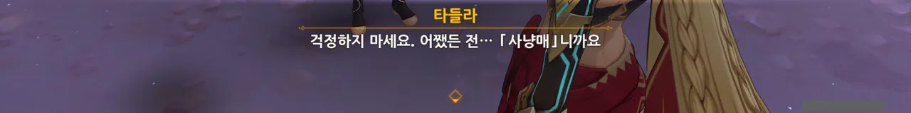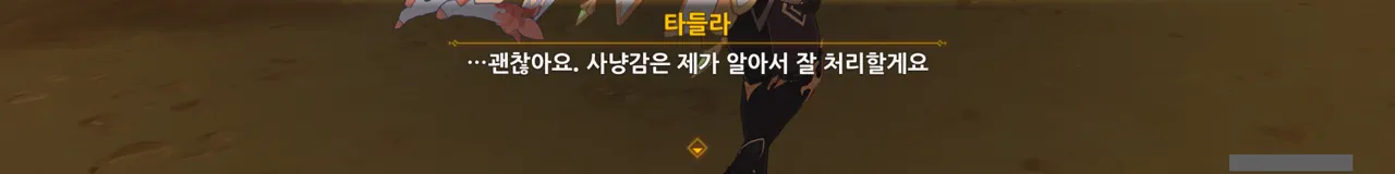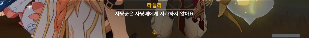 아까도 말했지만, 여행자에게 있어 타들라는 사냥매가 아니기 때문에 사과한 것이다.