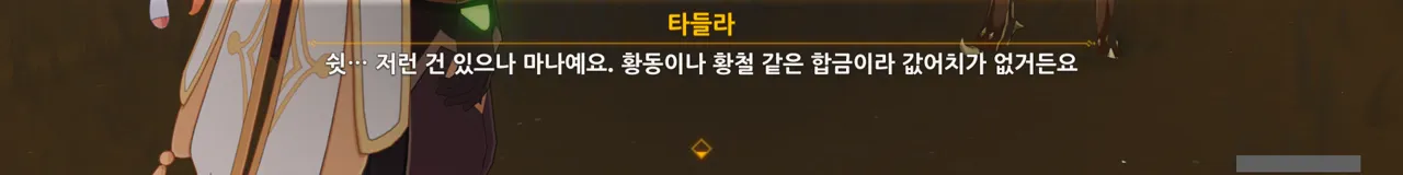 타들라의 '황동은 값어치가 없다'라는 말을 듣고 쓴웃음을 지었다. 실제 황동은 제법 비싼 금속이거든.