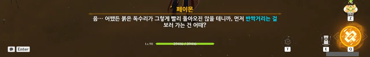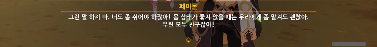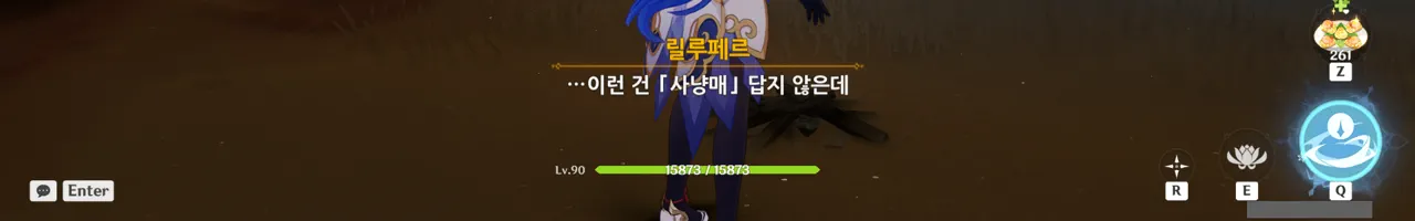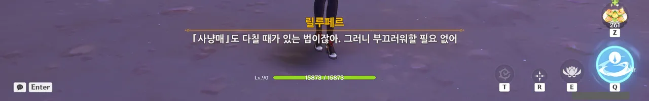 릴루페르가 '좋은 사냥매라면 자신의 생명을 소중히 여겨야 한다'라며 타들라가 사냥매임을 강조하길래, 일부러 페이몬의 편을 들어줬다.