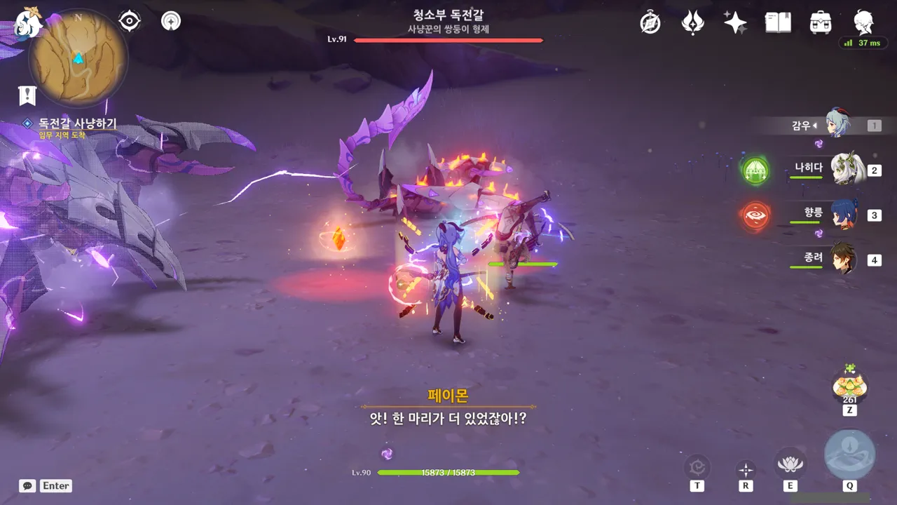 흠… 여기 옛날에 한 번 온 것 같은데… 친구와 함께 다인 모드에서 정처 없이 필드를 돌아다녔는데, 그러면서 보이는 자원이란 자원은 다 잡고, 보이는 몹이란 몹은 다 잡고 다녔었다. 그때 분명 이런 보랏빛 공간에서 거대한 전갈을 잡았었거든.