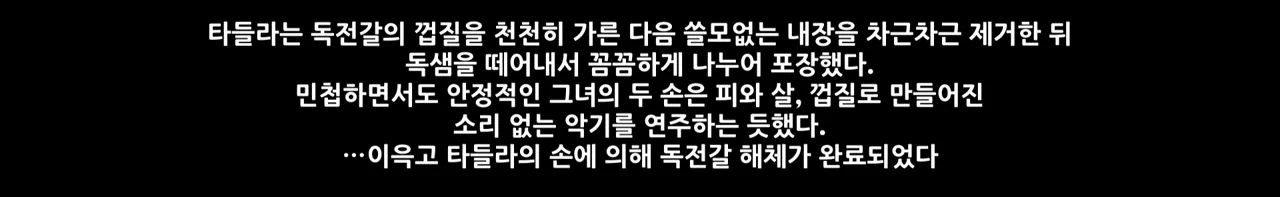 상처로 인한 통증에도 불구하고 독전갈 해체를 무사히 끝마친 타들라.