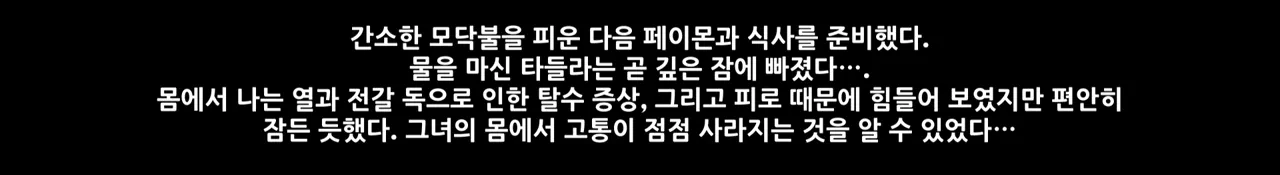 타들라가 고통을 참으며 천천히 걸어 나갔다는 말로 미루어보아, 타들라가 야영지로 돌아온 것도 고통을 참으며 온 것으로 보이는데…