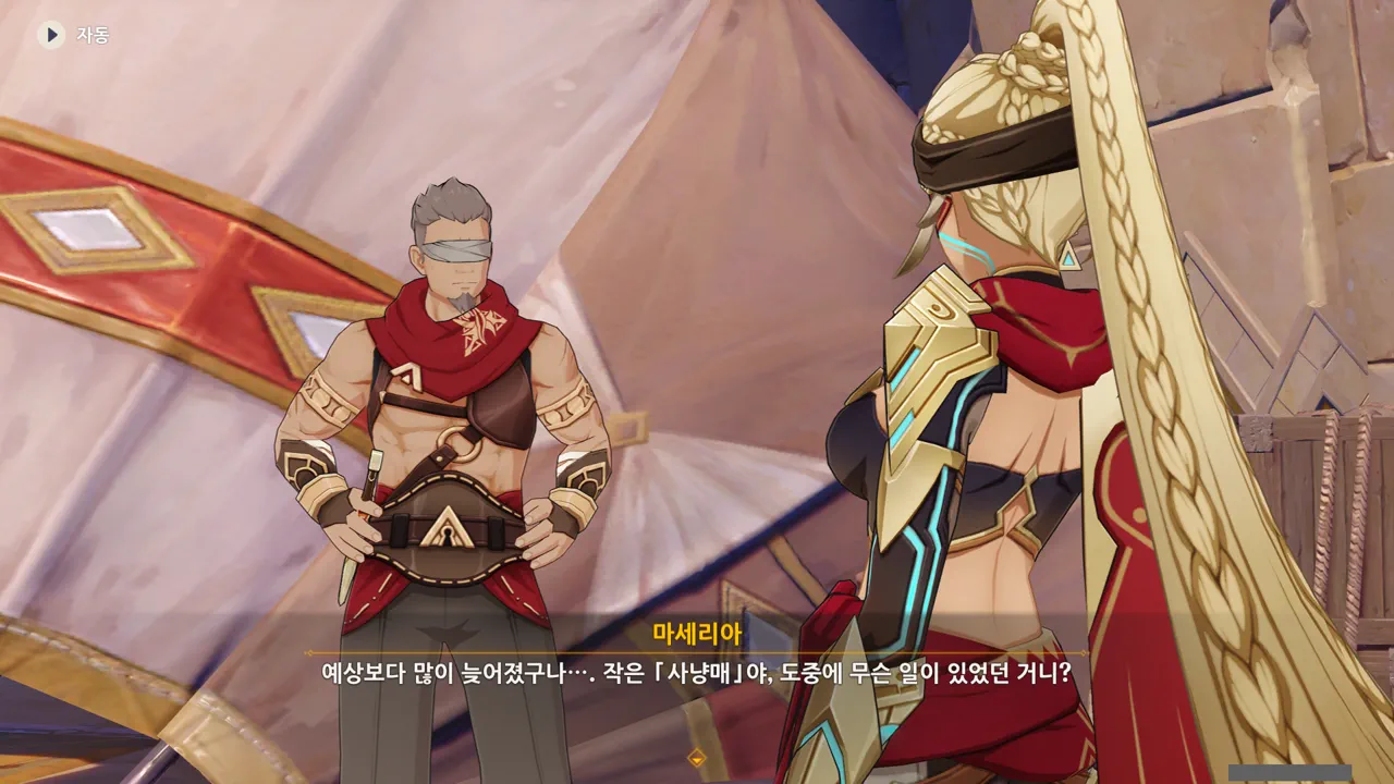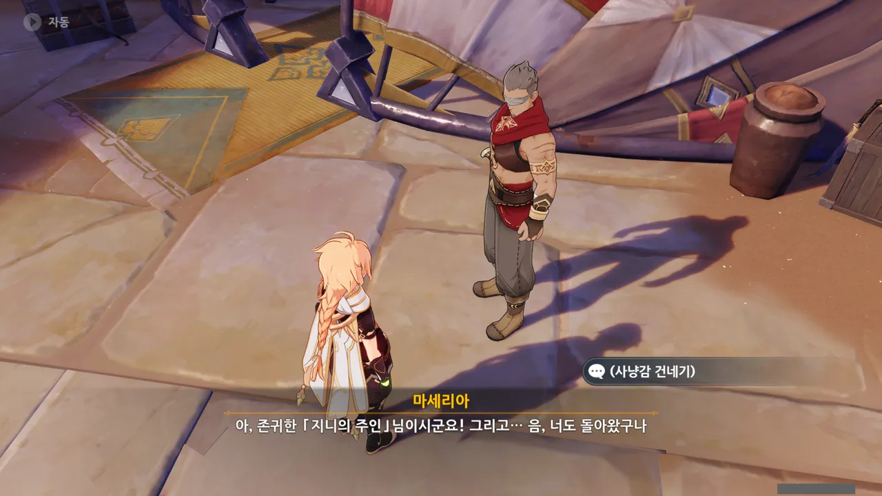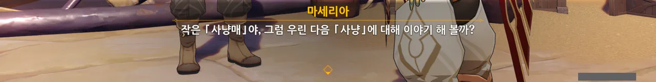 여행자가 떠나자 다음 사냥에 대해 지시하는 마세리아.