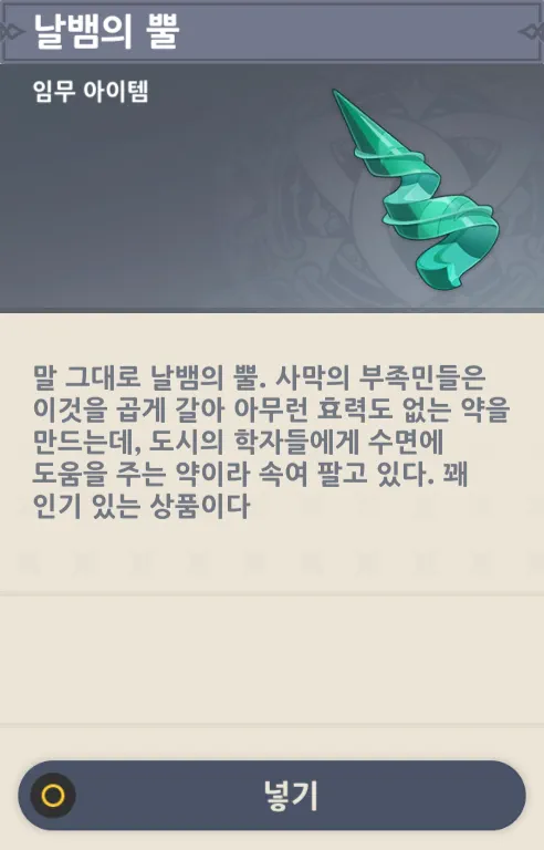 날뱀의 뿔은 아무런 효능이 없지만 사막 부족민들은 이걸로 만든 약을 도시 사람들에게 수면에 도움이 되는 약이라고 속여 팔고 있다.