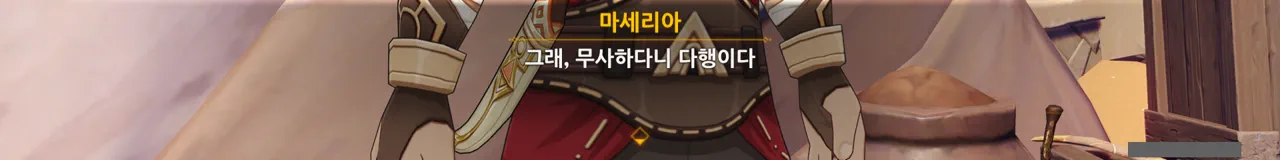 마세리아가 잠시 말을 않다가 "그래, 무사하다니 다행이다"라고 말한다.