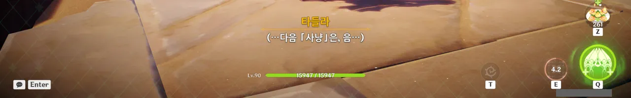 여행자를 돌아보지 않고 자기 할 말만 하는 타들라.