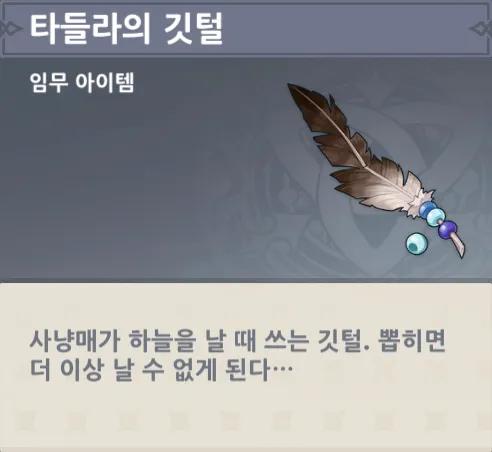 타들라를 처치하고 얻은 아이템의 플레이버 텍스트도 암울하기 그지없다.