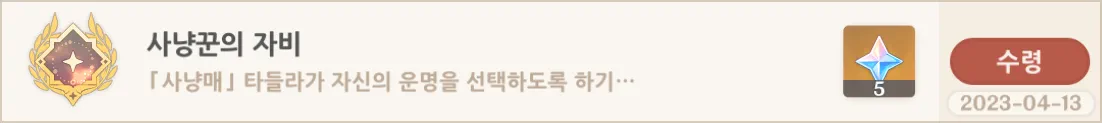 사냥꾼의 자비 업적을 마지막으로 사냥매 임무가 모두 끝나게 된다.