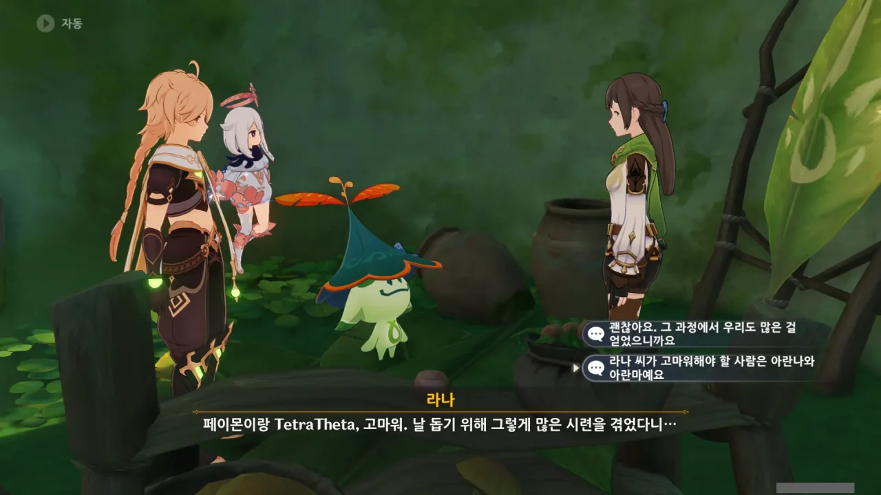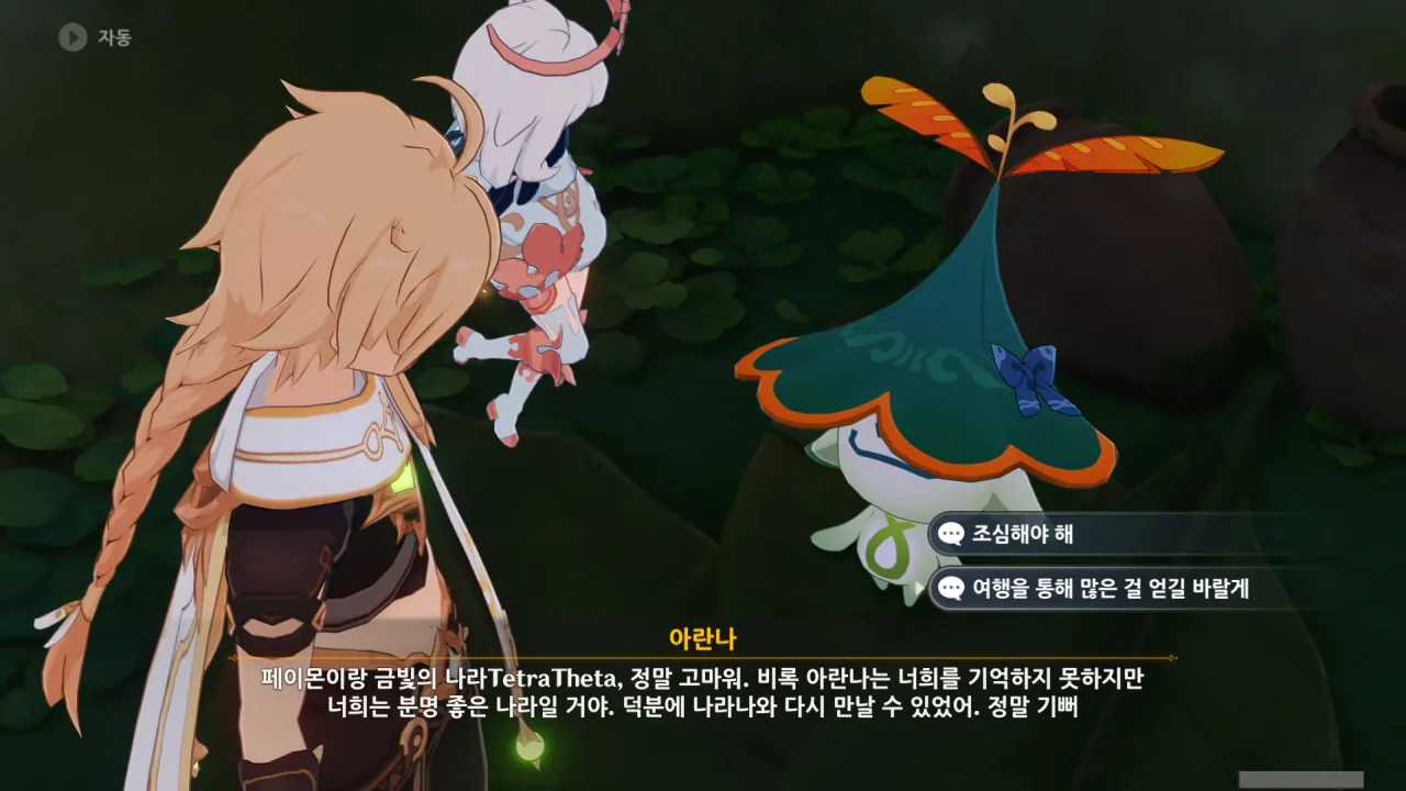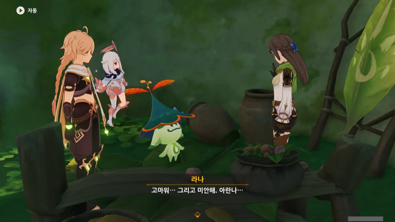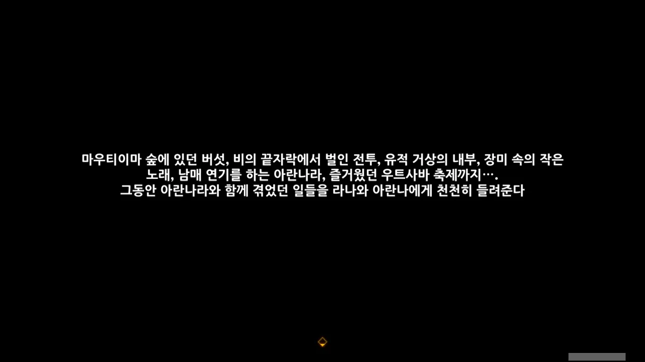 글 쓰면서 이제야 알아챈 건데, 아란나의 대사가 '미안해'가 아니라 '마안해'로 잘못 적혀 있다.