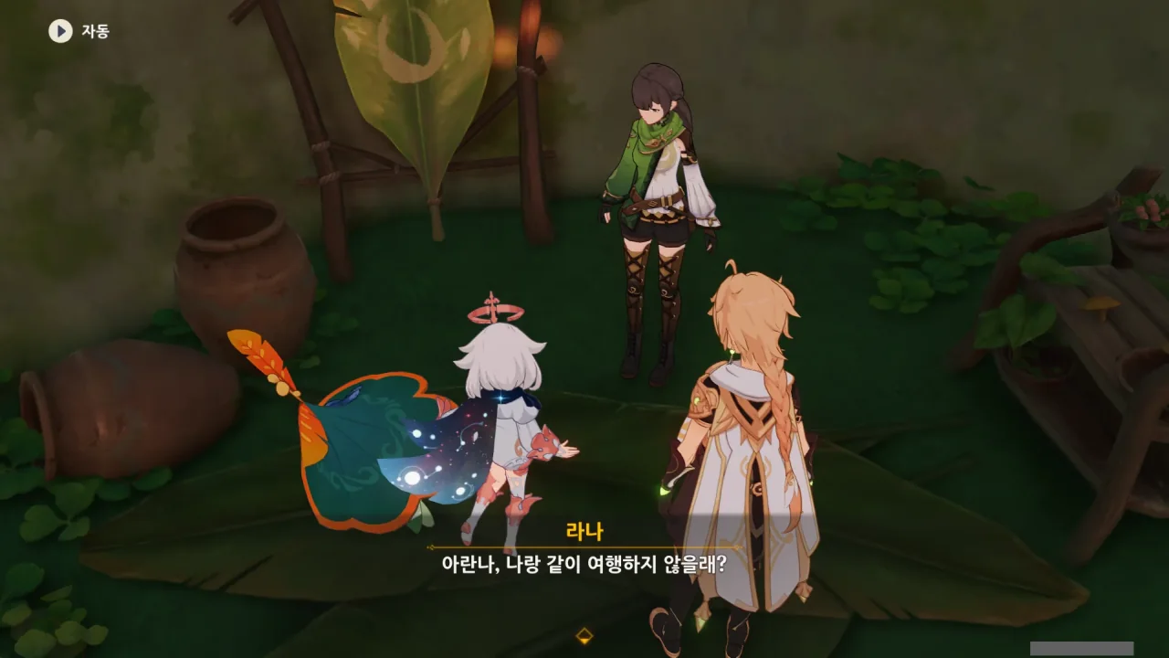 라나가 아란나에게 다시 한번 같이 여행하지 않겠냐고 제안하자, 아란나가 흔쾌히 받아들인다.