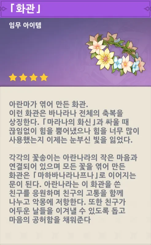 난 화관이 영원히 사라졌을 거로 생각했는데, 4성 임무 아이템이 되어 다시 돌아왔다.