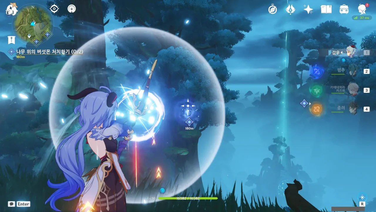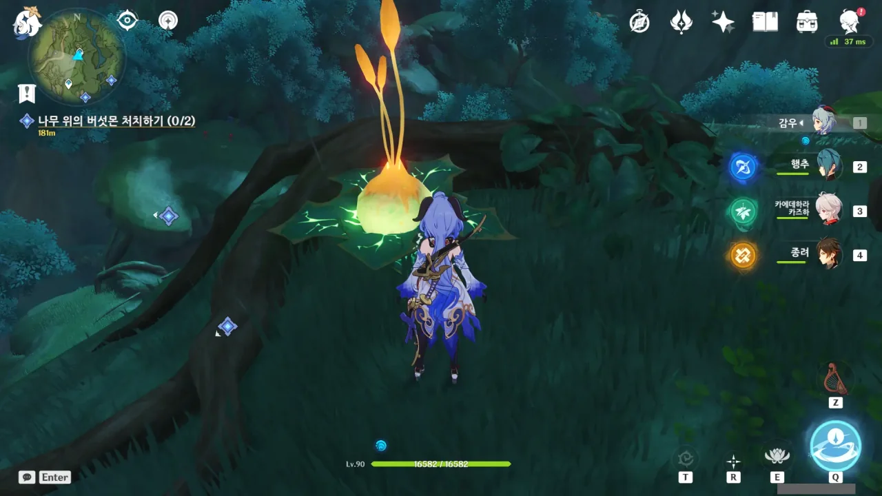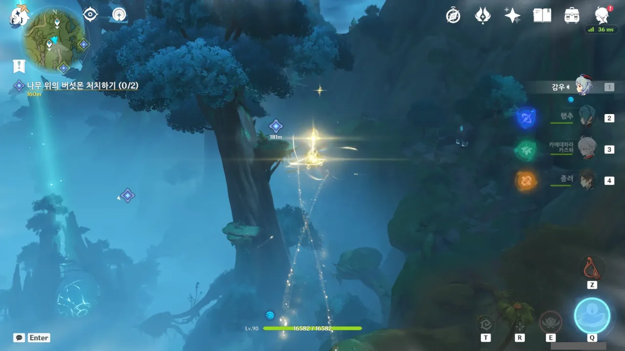 나무 위에 있는 버섯몬을 감우의 장거리 저격으로 처리할 수 있을까 궁금해서 실험해 보았다.