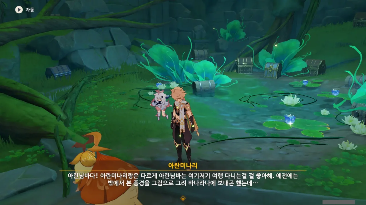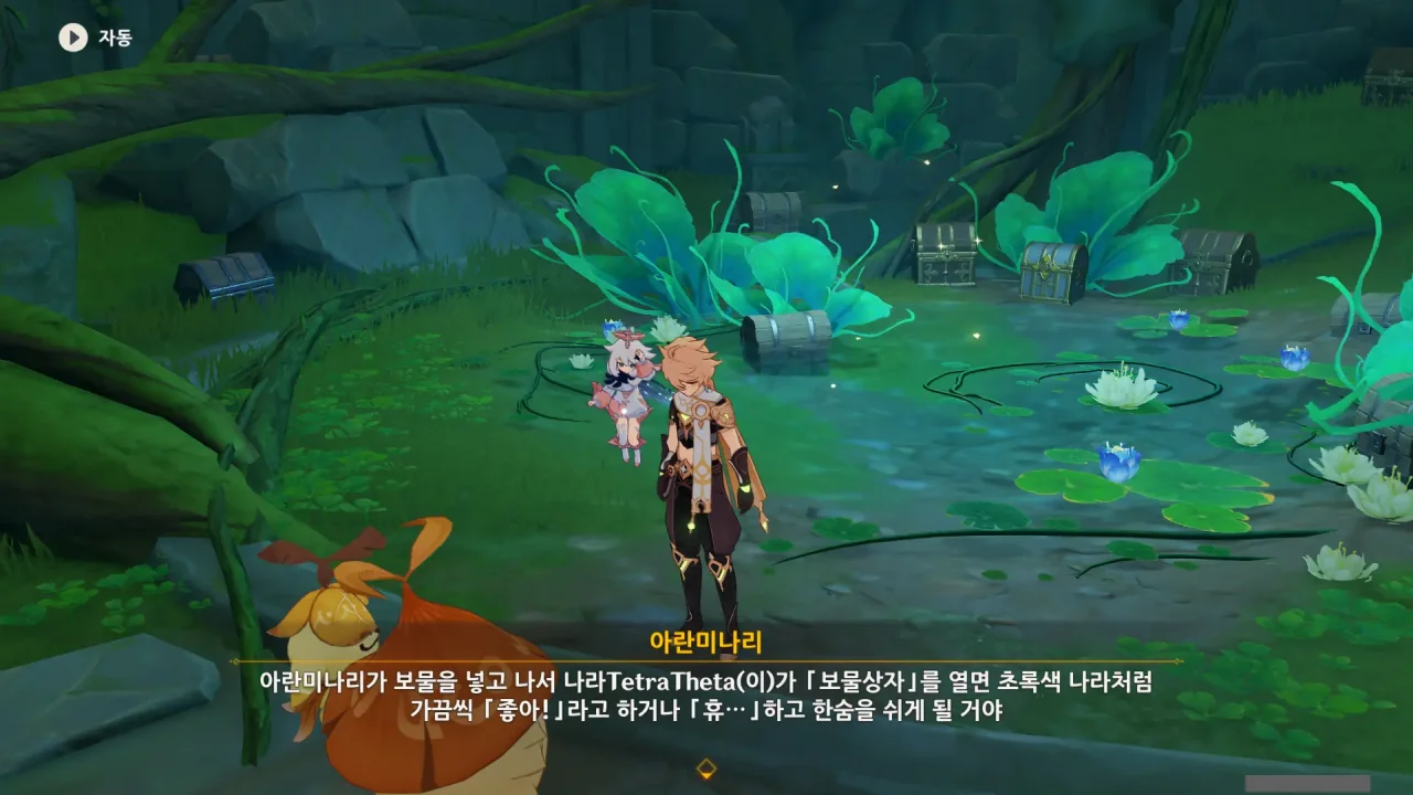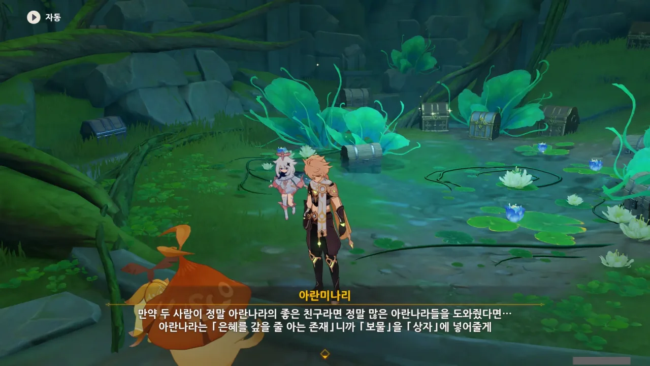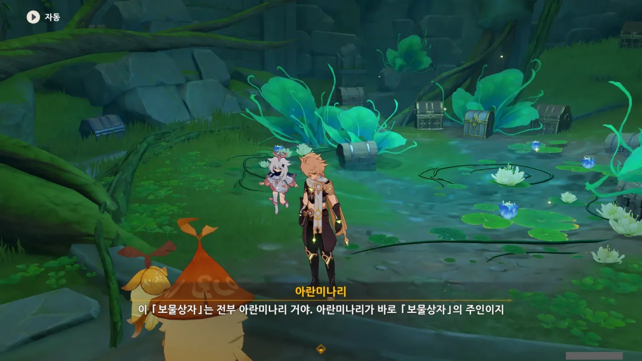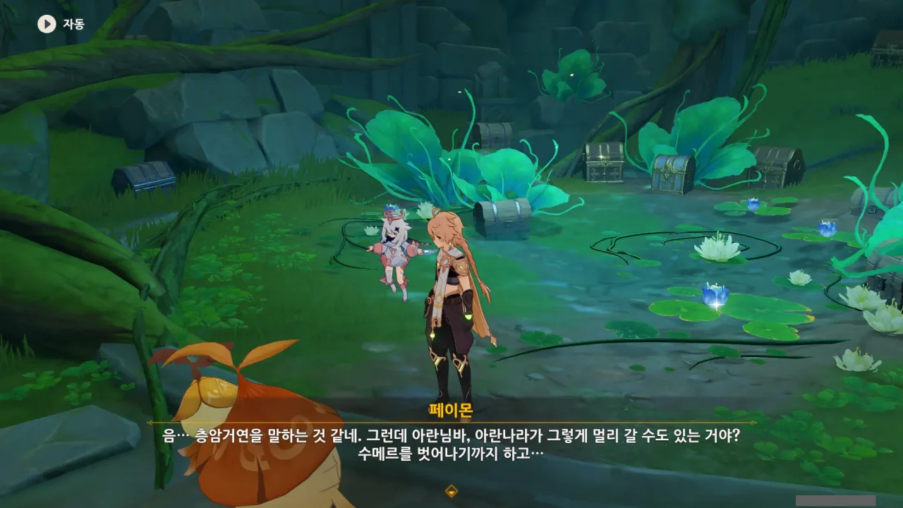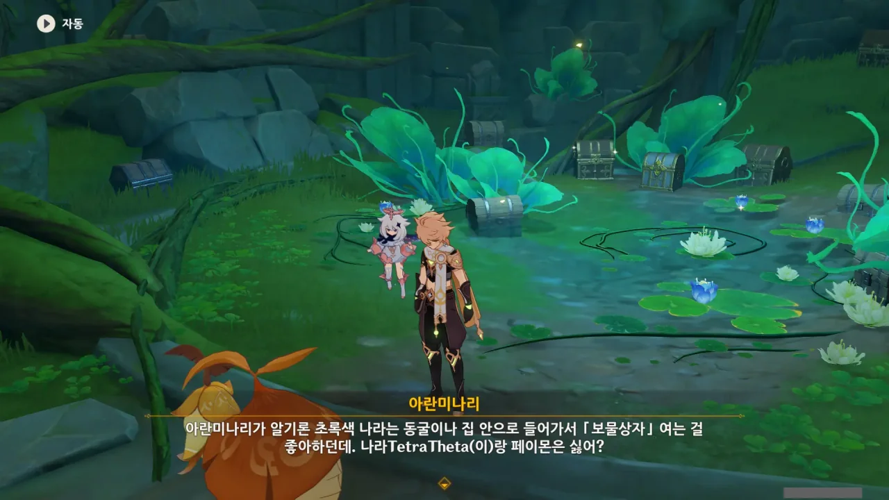 초록색 나라는 동굴이나 집 안으로 들어가서 「보물상자」 여는 걸 좋아하던데. 나라 여행자랑 페이몬은 싫어?