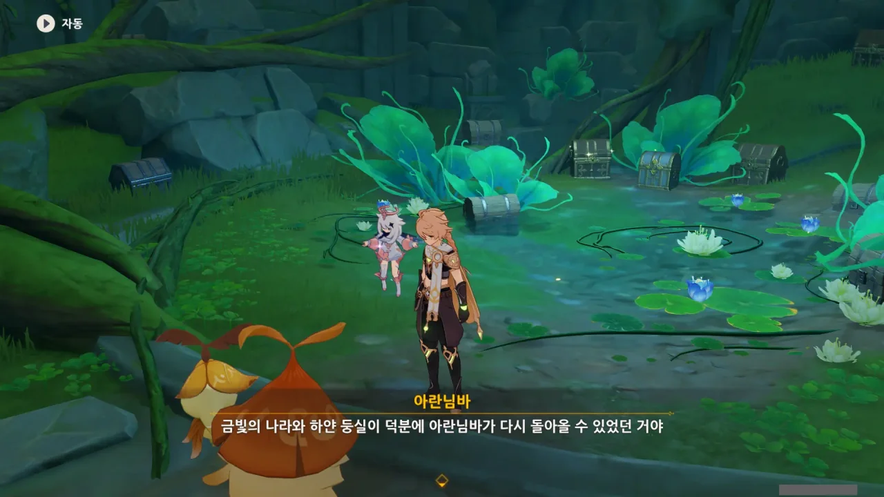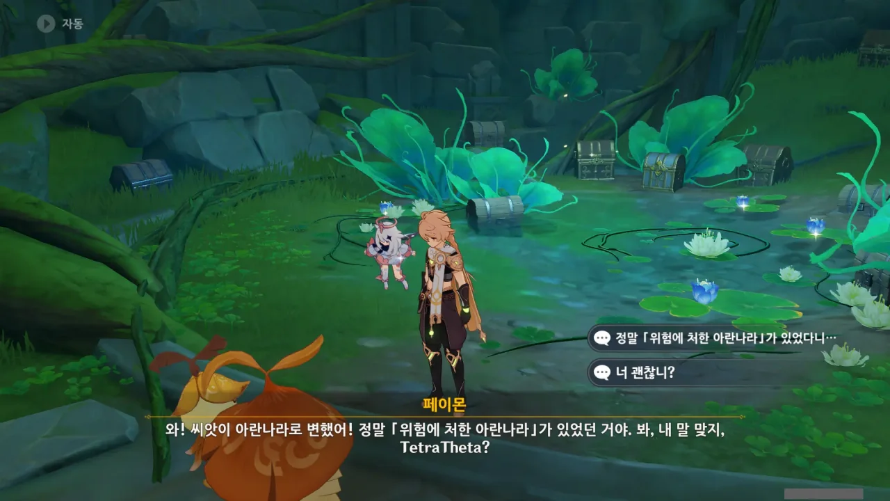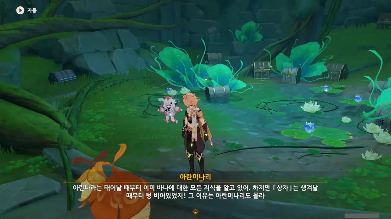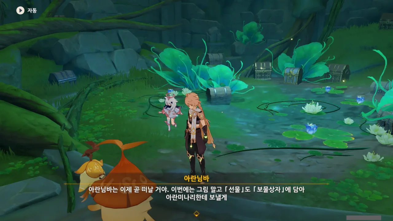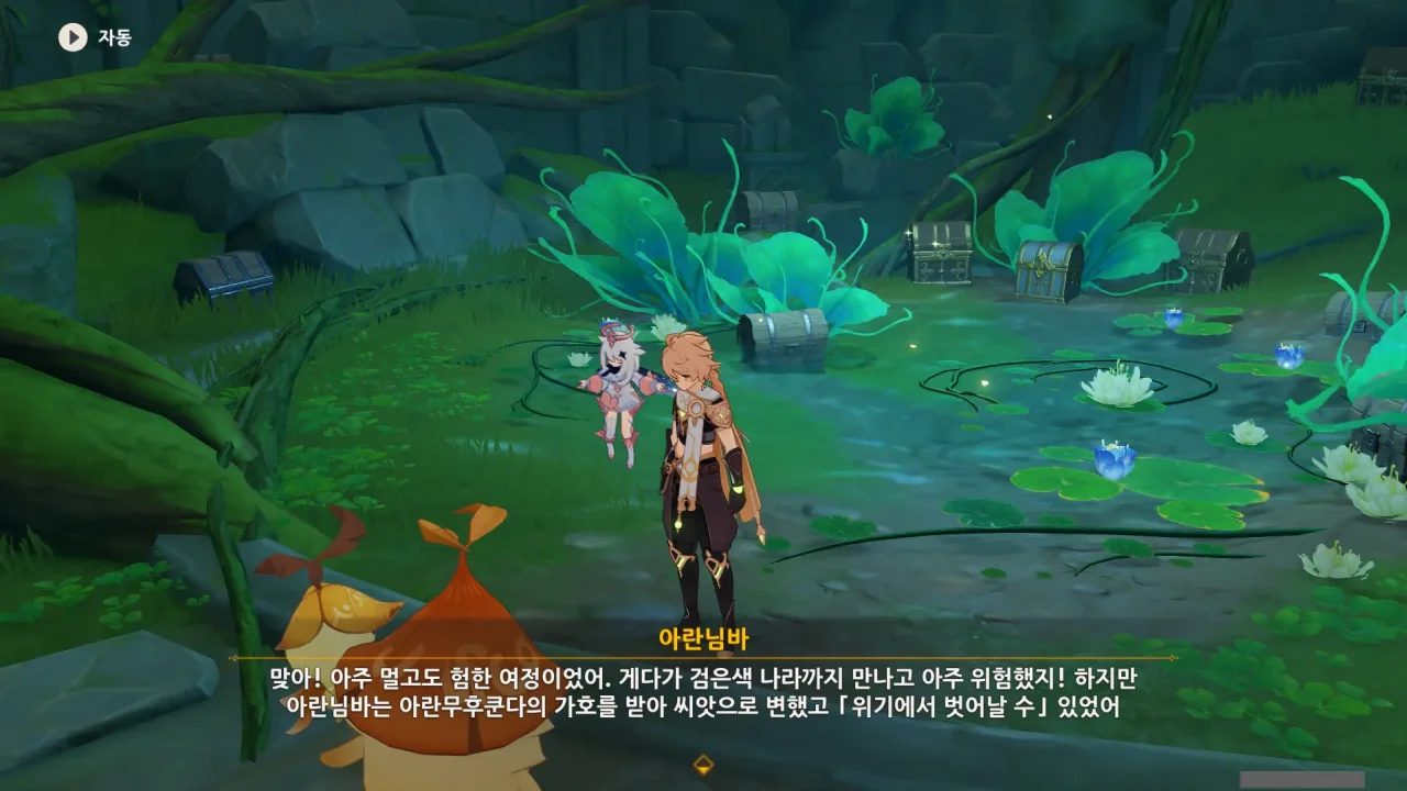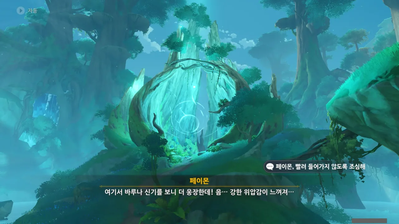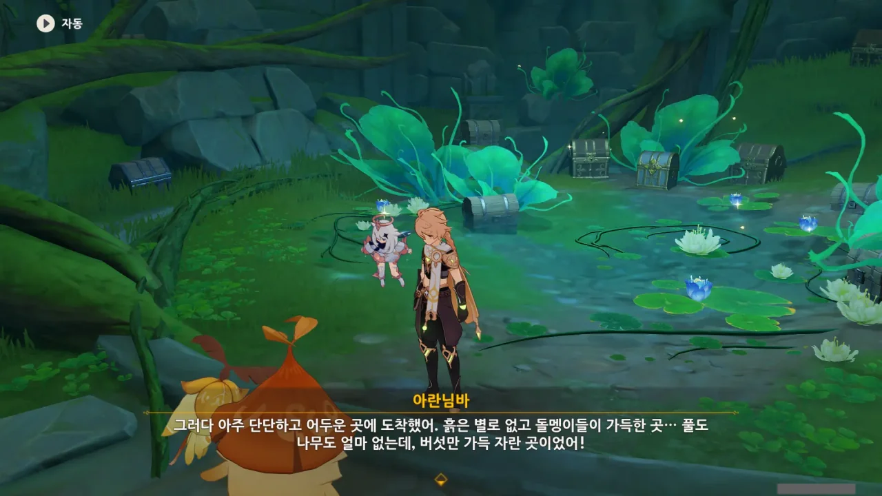 초록색 나라는 동굴이나 집 안으로 들어가서 「보물상자」 여는 걸 좋아하던데. 나라 여행자랑 페이몬은 싫어?
