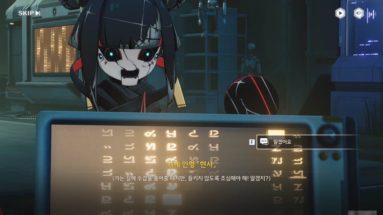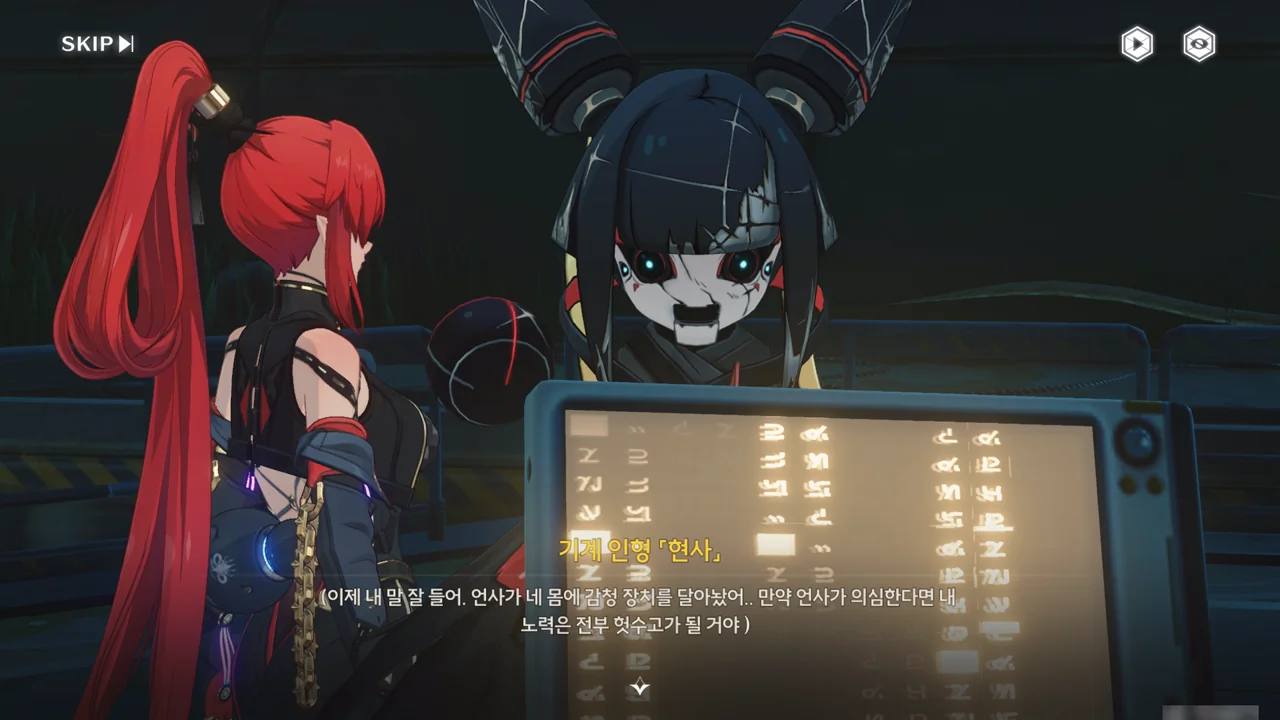 음림이 「현사」를 이용해 방랑자에게서 압수한 통신 패드에 글을 써 방랑자에게 보여준다. 언사가 방랑자 몸에 감청 장치를 달아두었기 때문에, 언사에게 들키지 않는 방식인 필담으로 메시지를 전달하는 것이다.