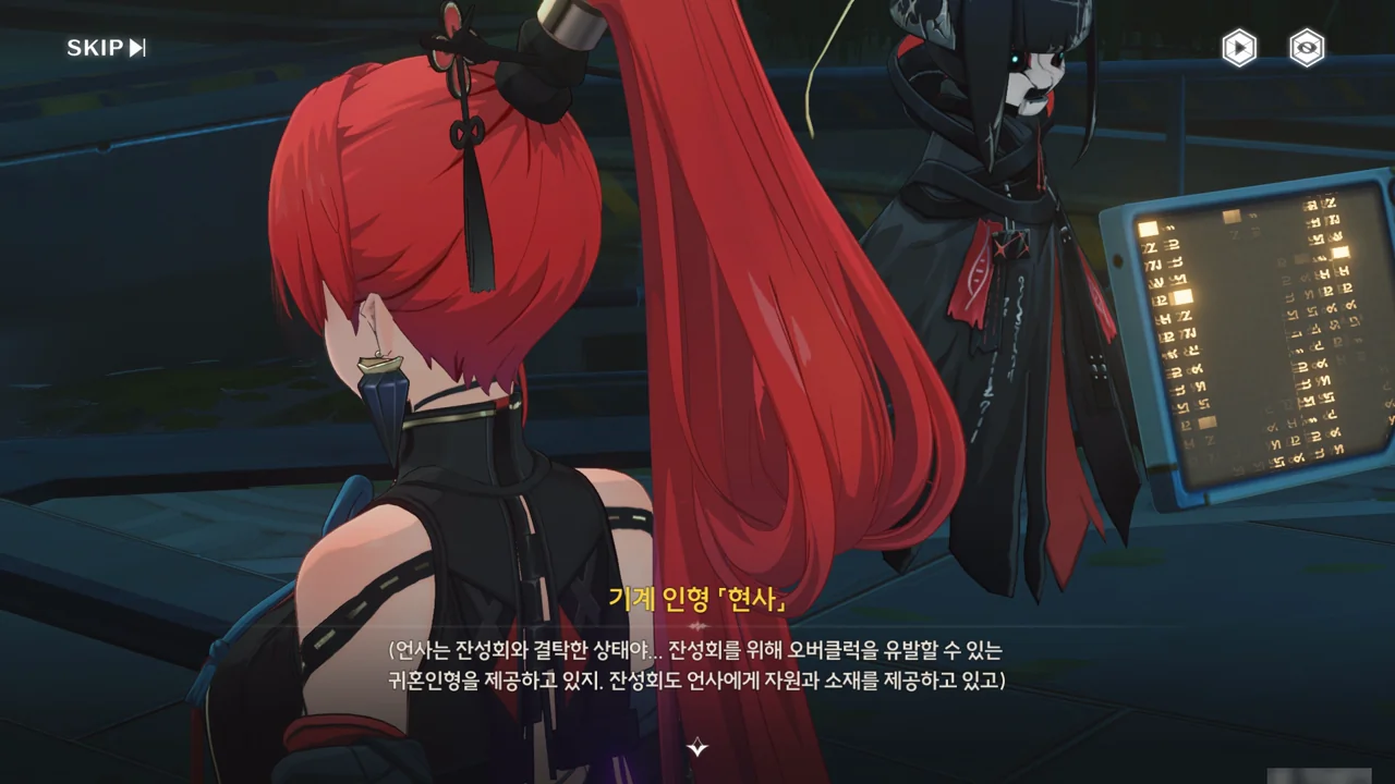 이미 알고 있는 바와 같이, 언사는 잔성회와 결탁해 자원과 소재를 공급받는 대신 잔성회에게 오버클럭을 유발할 수 있는 귀혼 인형을 제공하고 있다. 음림은 언사가 잔성회와 결탁했다는 증거를 수집 중이며, 이를 위해 방랑자의 협조가 필요하다고 한다.