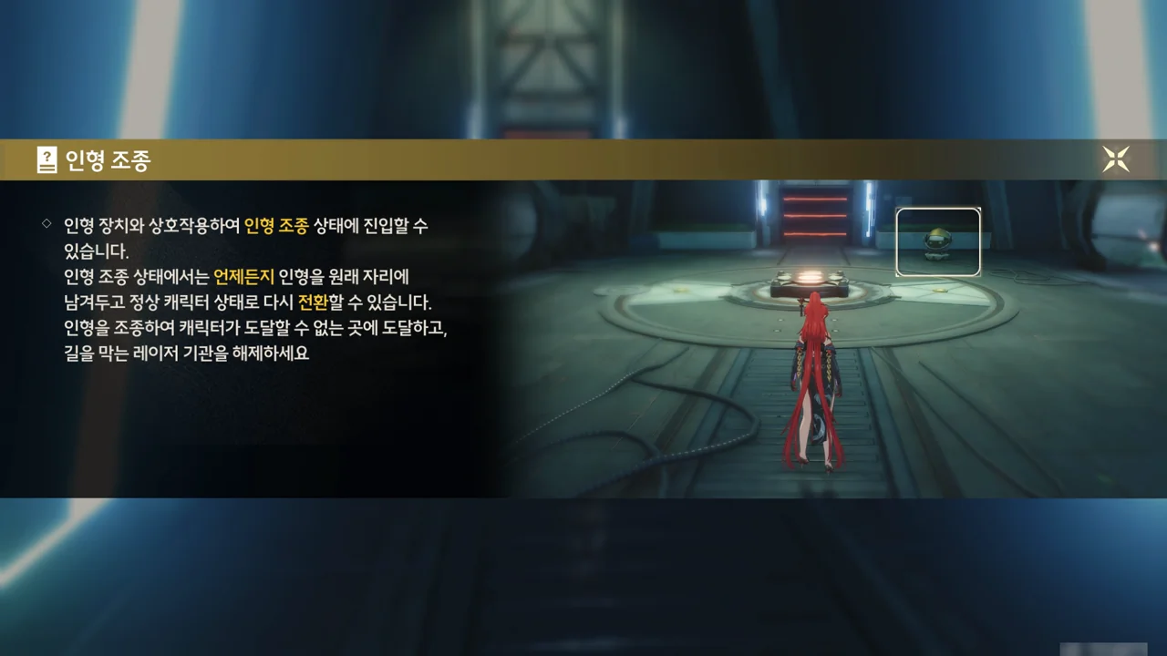 기계 장치를 누르면 인형을 조작할 수 있게 되는데, 인형을 조종해 발판 위에 올려놓으면 길을 막고 있는 레이저가 사라진다. 이후 인형의 조작을 끊으면 자유로이 움직여 레이저 너머로 넘어갈 수 있고.