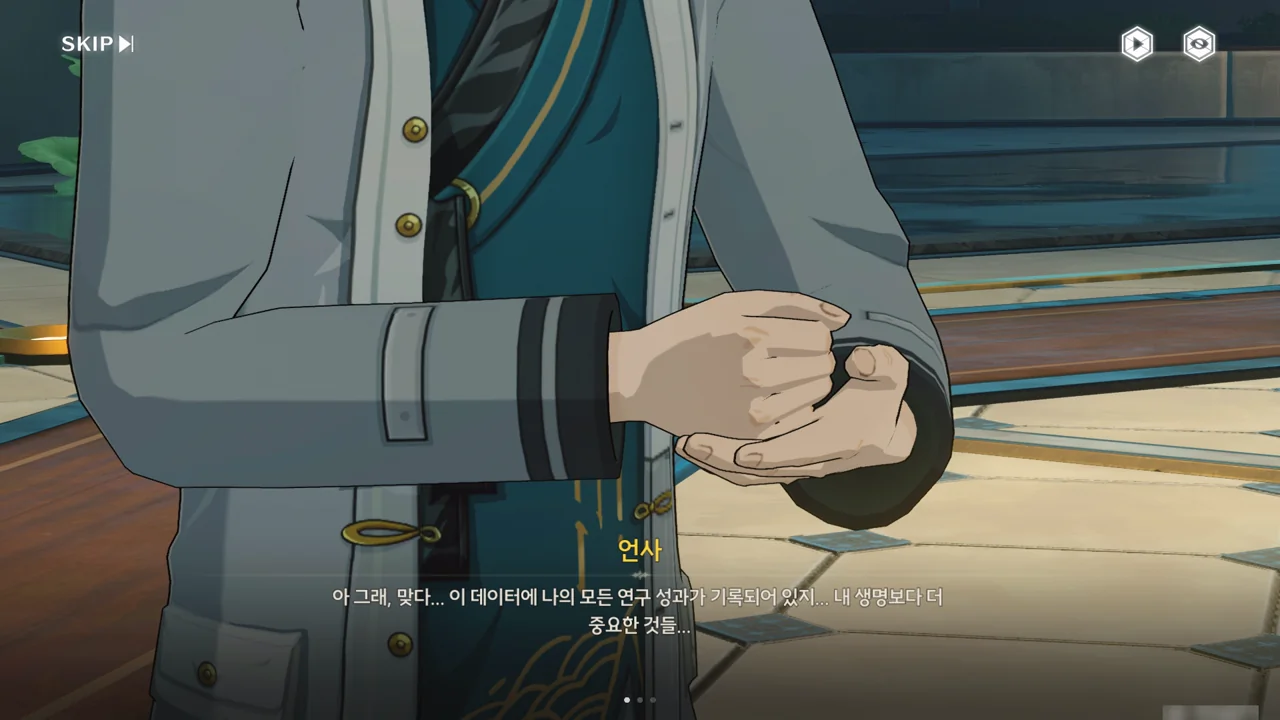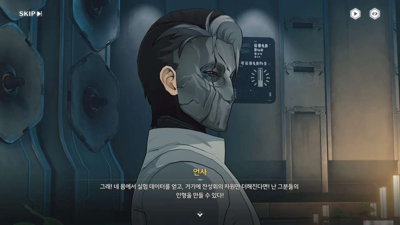 대체 방랑자의 어떤 점에서 실마리를 찾은 건지는 알 수 없지만, 언사는 잔성회의 자원과 방랑자의 몸에서 뽑아낸 실험 데이터가 있다면 음림의 부모님을 재현할 수 있을 거라 생각하고 있다.