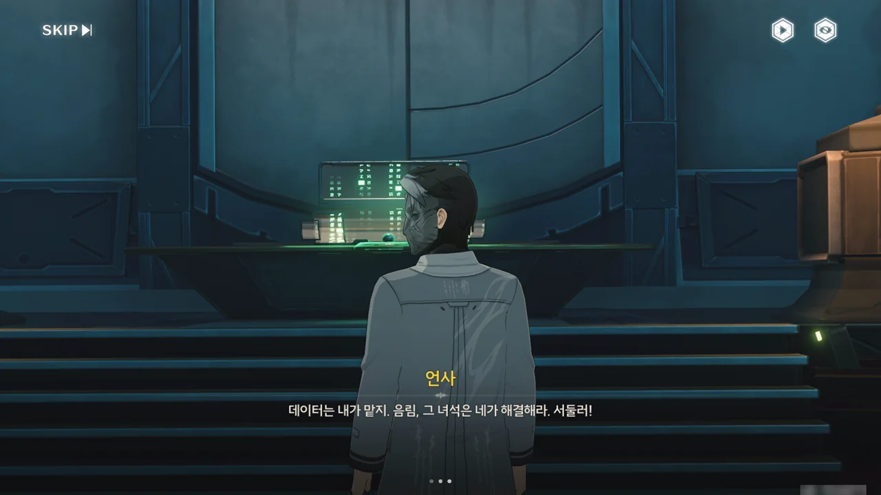 언사가 방랑자를 공장 암실로 데려오라고 말하며, 어차피 방랑자 몸에 감청 및 위치추적 기능이 있는 장치를 달아두었으니, 설사 방랑자가 탈출한다 하더라도 여기서 도망칠 수 없을 거라고 말한다.