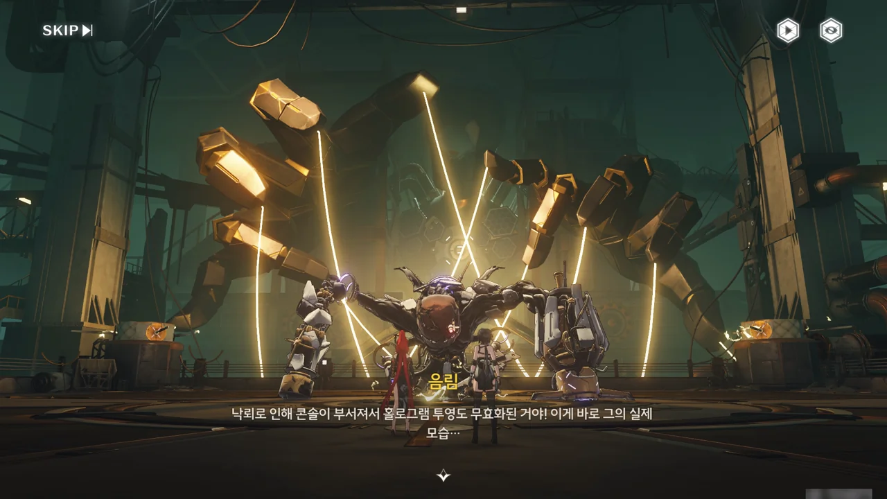 추방자를 모두 물리치고 나니, 흰색으로 빛나던 방은 간데없고, 우중충한 공장 지하실이 눈앞에 나타났다. 알고 보니 우리가 지금껏 보고 있었던 방안의 풍경은 모두 홀로그램 투영이었고, 이게 공장 암실의 진짜 모습이었던 것이다.