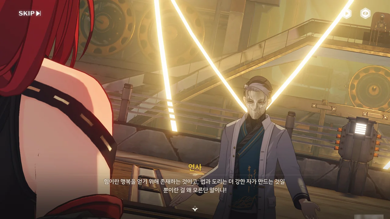 거기에 대고 언사는 "힘이란 행복을 얻기 위해 존재하는 것이고, 법과 도리는 더 강한 자가 만드는 것일 뿐"이라고 말하는데, 정작 그 논리에 순응하지 않는 건 언사라는 게 참 웃기다.